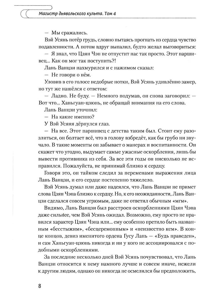 Комплект состоит из двух книг (3-4) Мосян Тунсю «Магистр дьявольского культа». В третьей книге личность Старейшины Илин раскрыта, и Вэй Усянь вновь становится объектом преследования всех кланов заклинателей, однако на этот раз он не одинок, ведь с ним прославленный Ханьгуан-цзюнь, Лань Ванцзи, который помогает Вэй Усяню укрыться в Облачных Глубинах. Теперь перед героями стоит непростая задача: узнать всю правду о смерти Чифэн-цзуня и доказать Главе Ордена Лань, Лань Сичэню, насколько жесток и коварен его давний друг. Тем временем весть о возвращении Старейшины Илин разлетается по миру, и вторая осада горы Луаньцзан неизбежно приближается… В четвертой книге герои покидают Пристань Лотоса, их ждёт дальнейшее расследование замыслов Верховного заклинателя и нелёгкое противостояние злодею. Но эти обстоятельства отходят на второй план, ведь открываются главные тайны повествования. Почему всё это время Лань Ванцзи находился рядом с Вэй Усянем? Откуда на теле безупречного Ханьгуан-ц-зюня шрамы и ожог от тавра? И что же, в конце концов, произошло тогда, тринадцать лет назад, после битвы при Безночном Городе? Том содержит дополнительные главы.| Издательство | ИД Истари Комикс |