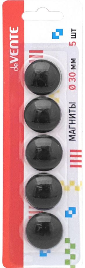 Магнит для доски офисной "deVENTE" O 30 мм, 5 шт, цвет черный, в картонном блистере