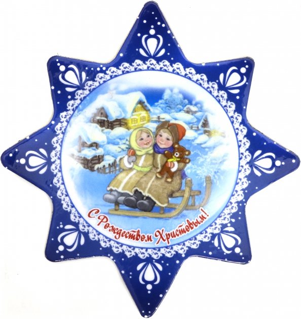 Магнит на картоне "С Рождеством Христовым! Дети на санках", 90х95 мм