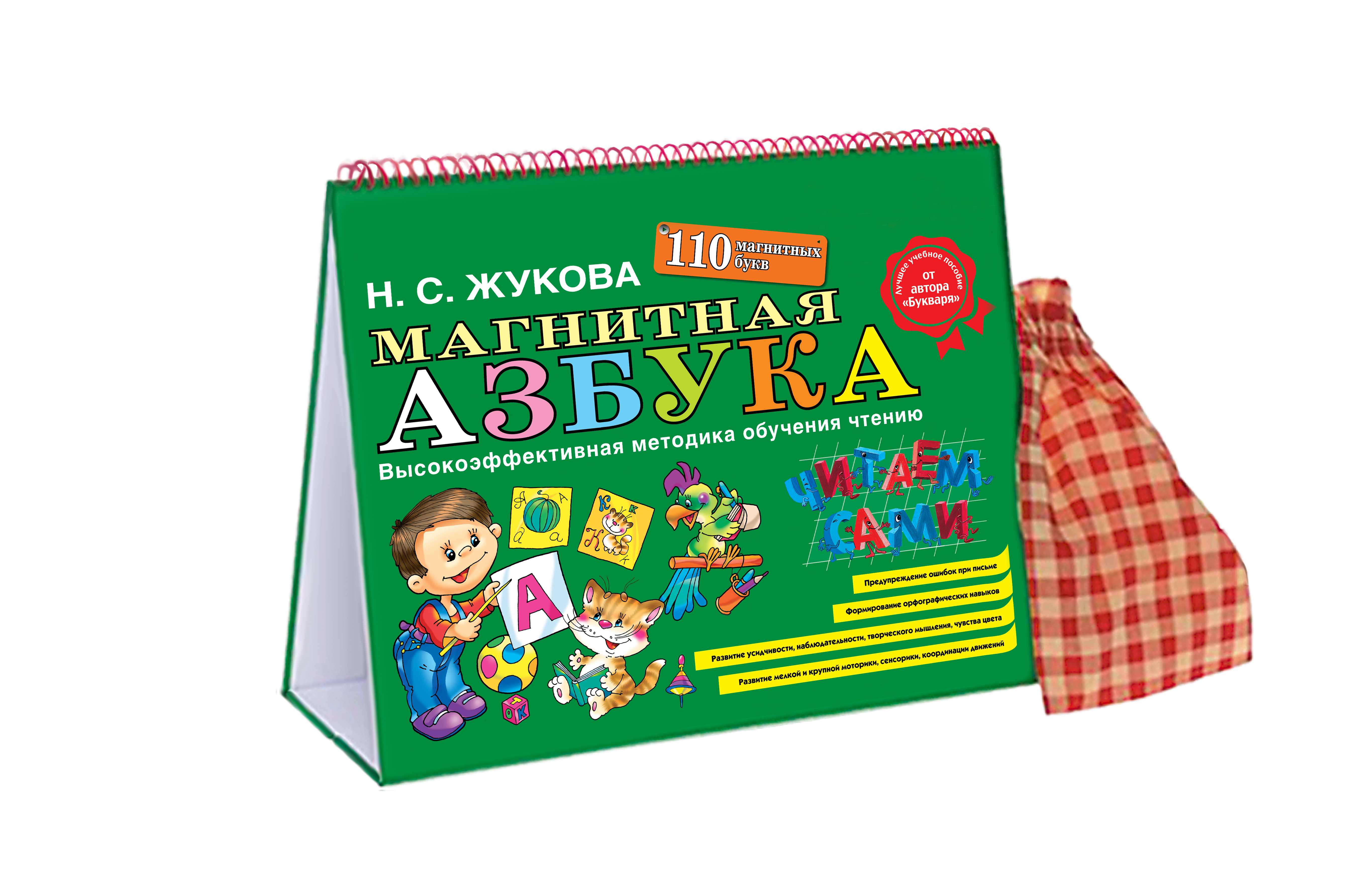 В новом издании знаменитой «Магнитной азбуки» букв стало еще больше. И еще увеличилось количество строк на магнитном мольберте-доске. А это значит, что станет еще веселее играть в школу! Такой комплект подойдет как для индивидуальных занятий дома, так и для занятий в классе или для наглядного обучения в небольших группах. В ПОДАРОЧНЫЙ КОМПЛЕКТ ВХОДИТ: - набор из 110 магнитных букв; - магнитный мольберт-доска; - мешок-сумочка для хранения букв; - методические указания по работе с «Магнитной азбукой» (содержат дополнительные обучающие упражнения). Буквы со специальным цветовым кодом изготовлены из безопасного экологически чистого материала и имеют мягкую, приятную на ощупь специальную поверхность для развития сенсорных «тактильных» ощущений ребенка. Магниты надежно приклеены к буквам, ребенок не сможет оторвать их. Об авторе методики: Надежда Сергеевна Жукова - известный логопед, кандидат педагогических наук, приверженец классической педагогики. В своих книгах она использовала как исследования известных логопедов, так и самостоятельно разработанные оригинальные методики, проверенные временем. Имея большой практический опыт работы с особенными, «трудными» детьми, Надежда Сергеевна создала методику, доступную каждому, уйдя от «наукообразности» и «заумности». Все, кто когда-либо работал с ребенком по пособиям Надежды Жуковой, отмечают простоту подачи материала, легкость усвоения малышами и быструю обучаемость. Меняется окружающий мир, меняются ценности и предпочтения родителей, фокус колеблется от печатной книги к электронным гаджетам. Но как и двадцать лет назад, так и сейчас педагоги и логопеды рекомендуют для занятий с ребенком и обучения чтению зеленые пособия Надежды Жуковой. Если вы захотите продолжить занятия с ребенком по авторской программе Н.С. Жуковой, издательство «ЭКСМО» рекомендует вам обратить внимание на следующие книги: - «Букварь», - «Первая после букваря книга для чтения», - «Уроки чистописания и грамотности», - «Я говорю правильно», - «Я пишу правильно», - «Уроки логопеда».| Издательство | ООО "Издательство "Эксмо" |