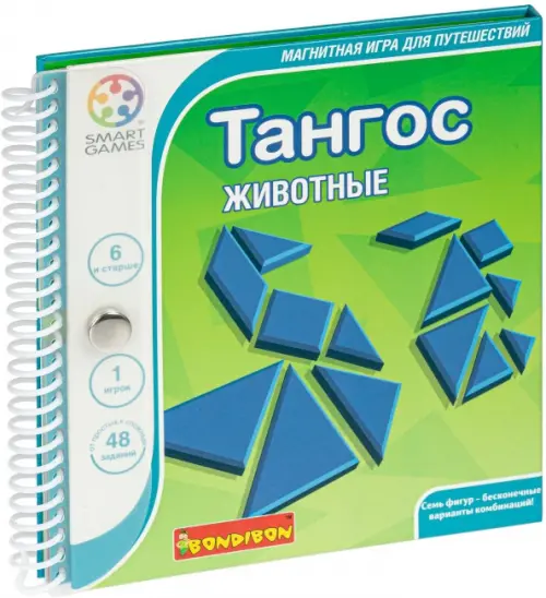 Складывай тангос-пазл, где бы ты не находился! Тангос-пазл - удовольствие от традиционного танграма в компактном варианте. Отличное времяпрепровождение дома, во время коротких поездок или продолжительных путешествий. Выбери пазл и собери его, используя 7 фигур. Детали пазла магнитные, поэтому не будут смещаться. Если возникли затруднения, просто переверни карточку и посмотри ответ. Креативные задания, 24 пазла - увлекательное занятие на несколько часов. Ты можешь создать даже свои собственные дизайны!