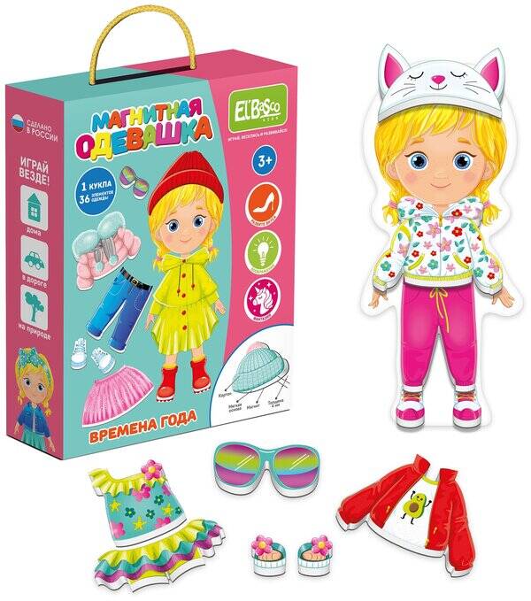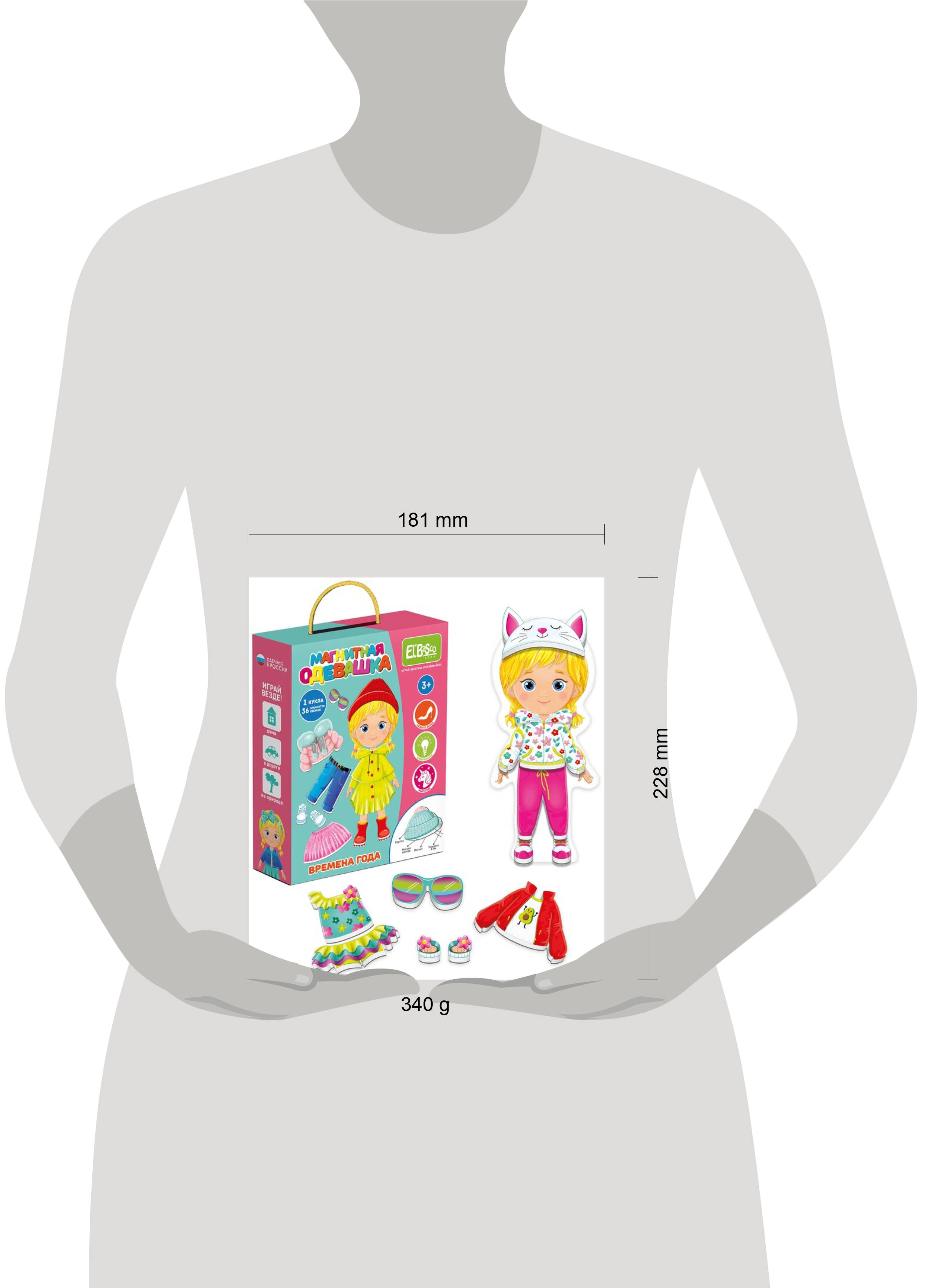 Магнитная игра-одевашка "Времена года" - увлекательное занятие для вашего ребенка. В наборе фигурка куколки и элементы одежды на каждое время года. Предложите малышу одеть героиню самостоятельно. Подскажите, как правильно одеваться зимой, а как летом. Интерактивная ролевая игра поможет развить логику, внимание, фантазию и пространственное мышление, а также расширит словарный запас и зрительное восприятие. Играя в одевашку "Времена года" у ребенка будет развиваться чувство стиля и понимание сезонов года. Ребенок гарантировано останется доволен и увлечен необычной и уникальной игрой. Игра упакована в картонную коробку с ручкой, что позволяет брать игру с собой в дорогу, компактно хранить её на полке и станет отличным подарком на любой праздник.| Издательство | Я РАСТУ ТОЙЗ ООО |