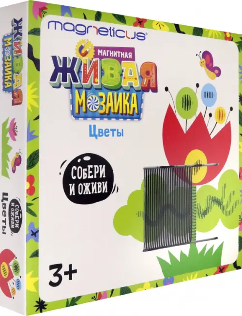 Анимированная магнитная мозаика "Цветы" привлечёт внимание не только малыша, но и родителей! Если приложить к собранной мозаике входящую в набор специальную плёнку и провести по картинке, создаётся оптическая иллюзия, цветы, птички и бабочки оживают.