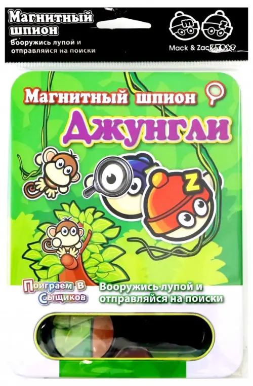 В комплекте: магнитный пазл из 25 деталей, увеличительное стекло, вращательная стрелка, правила игры
