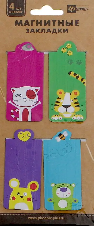 Магнитные закладки для книг. Забавные животные, 4 штуки