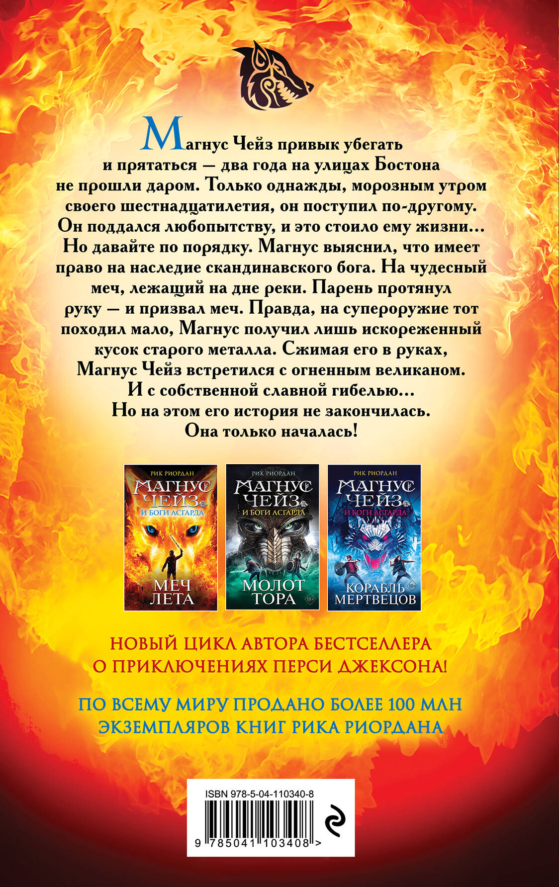 В день, когда ему исполнилось шестнадцать, Магнус Чейз узнал о себе кое-что неожиданное. Оказалось, он имеет право на наследие одного из скандинавских богов и может достать со дна покрытой льдом реки Чарльз древний меч. Магнус протянул руку - и призвал чудесное оружие. Меч оказался искореженной и покрытой ракушками железякой. А вот огненный великан, пожелавший завладеть им, выглядел очень внушительно. Но Магнус (почти) не испугался! Он вступил с чудовищем в бой - и погиб смертью, достойной героя. Именно так начались его невероятные приключения… На этот раз Рик Риордан - автор мирового бестселлера о приключениях Перси Джексона - обратился к скандинавской мифологии. Вас ждет рассказ о новых героях и встреча со старыми знакомыми из Лагеря полукровок. «Меч Лета» - первая книга трилогии о Магнусе Чейзе.| Издательство | Эксмо |