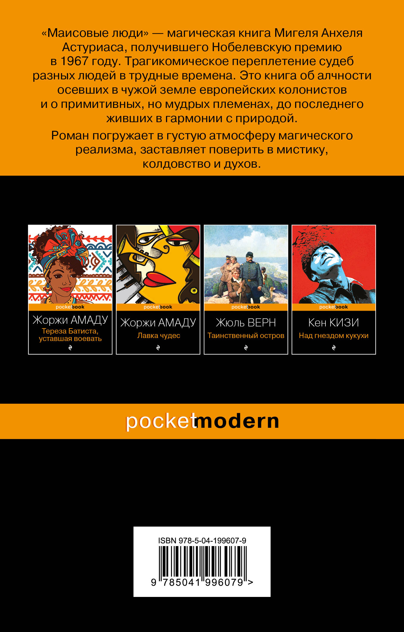 ХХ век - «звездный час» латиноамериканской литературы. Ее началом принято считать 1949 год. Именно тогда появились первые «магические книги» - «Маисовые люди» Мигеля Астуриаса и повесть «Царство Земное» Алехо Карпентьера. Почти через 20 лет Гарсия Маркес напишет роман «Сто лет одиночества» - самый известный образчик жанра «магический реализм». «Маисовые люди» - зарубежная классика, захватывающая читателя в плен с первых слов. События превращаются в сюрреализм, как на картинах Сальвадора Дали, и уже нельзя отличить реальность от вымысла. Сюжет книги прост. Гаспар Илом сговорился с индейцами, чтобы помешать торговцам вырубить и выжечь лес. Многие алчные торговцы отправились на тот свет от его руки, а затем индеец Мачохан купил яд и отравил Гаспара. Но нельзя просто так убить человека, которого охраняют желтые кролики с ушами из листьев маиса. Для них нет ни тайн, ни угроз, ни расстояний… Борьба продолжается. Новая глава начинает историю о самых разных людях и магических предметах: о страдающей от проклятий семье, о прозревшем слепом, о почтальоне, оборачивающемся койотом. Действие классического романа охватывает и деревни, и города. Автор показывает жизнь как она есть: от лесных зверей до мудрых шаманов, от маисовых полей до ураганов в горных ущельях. В «Маисовых людях» - дух Гватемалы, ее экзотика, история, которой не найти в справочниках и энциклопедиях. Если вы интересуетесь культурой Южной Америки и неравнодушны к жанру «магический реализм», не проходите мимо. Это один из лучших образцов эксклюзивной классики Латинской Америки от гениального писателя, получившего Нобелевскую премию в 1967 году.| Издательство | ООО "Издательство "Эксмо" |