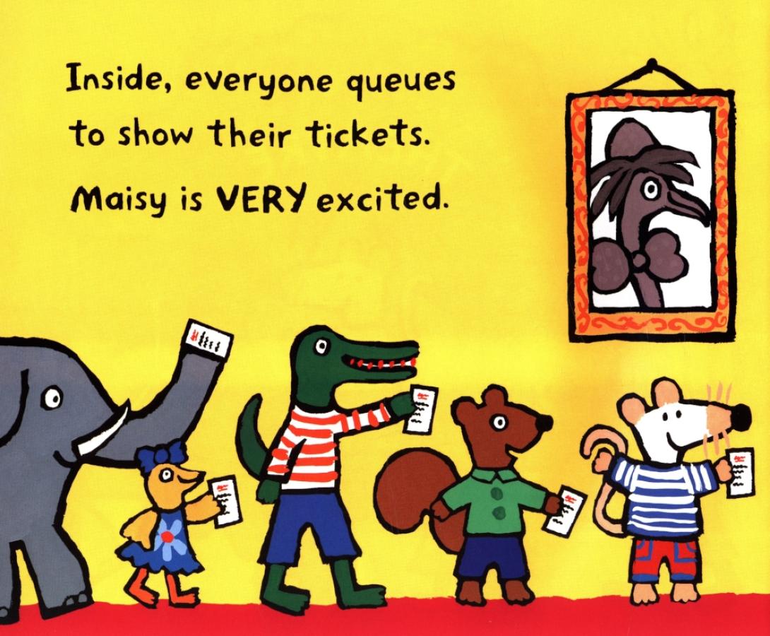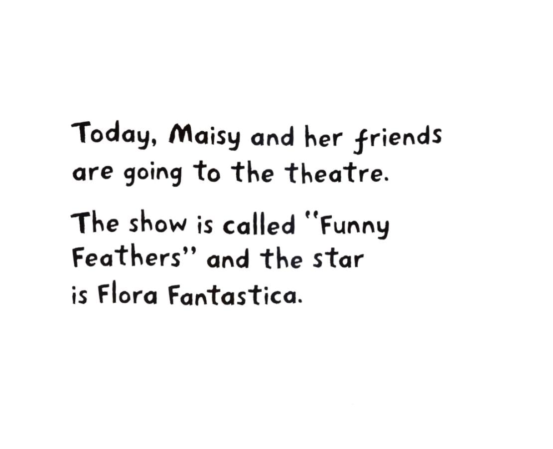 Today, Maisy and her friends are off to the theater to see a show starring Flora Fantastica! First they line up to show their tickets. After the usher helps them all find their seats, the lights go down, and Maisy and her friends take in a feast for the senses: dramatic flashing lights, colorful costumes, amazing songs, and lots of exciting characters. From the rise of the curtain through intermission (and snacks) to a standing ovation at the end, Maisy takes her fans on a trip to the theater that makes a new experience familiar and fun.| Издательство | Walker Books |