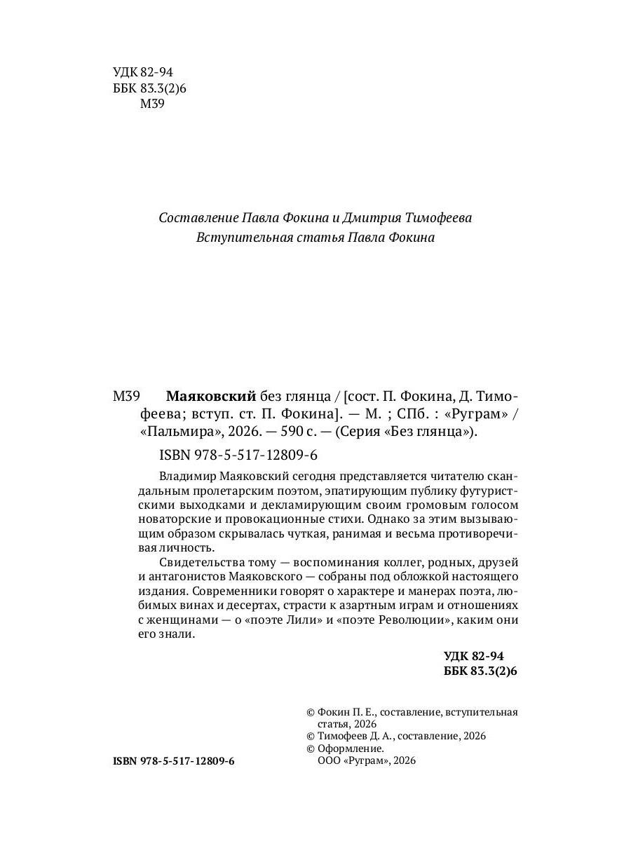 Владимир Маяковский сегодня представляется читателю скандальным пролетарским поэтом, эпатирующим публику футуристскими выходками и декламирующим своим громовым голосом новаторские и провокационные стихи. Однако за этим вызывающим образом скрывалась чуткая, ранимая и весьма противоречивая личность. Свидетельства тому - воспоминания коллег, родных, друзей и антагонистов Маяковского - собраны под обложкой настоящего издания. Современники говорят о характере и манерах поэта, любимых винах и десертах, страсти к азартным играм и отношениях с женщинами - о «поэте Лили» и «поэте Революции», каким они его знали.| Издательство | Т8 RUGRAM |