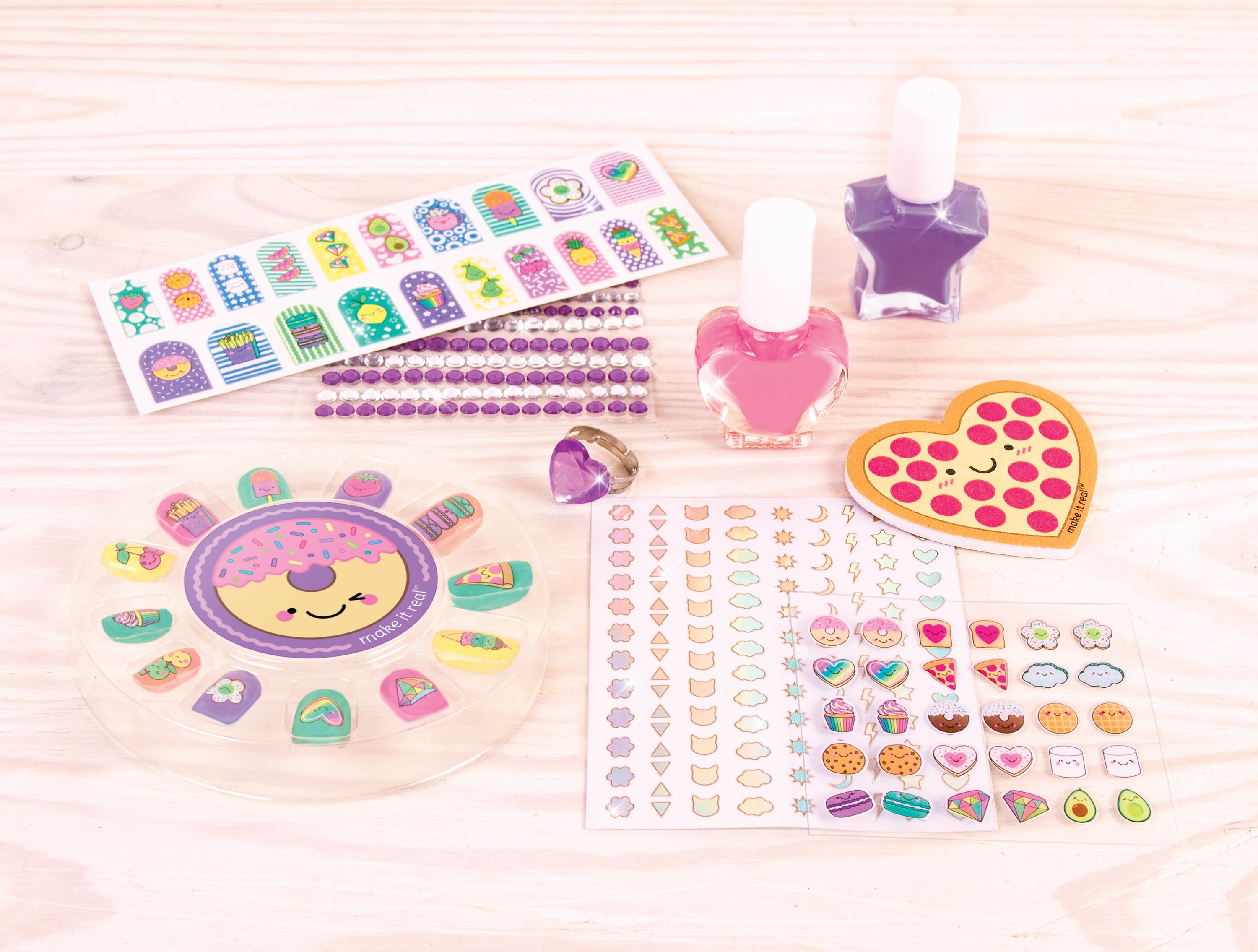 Создавайте великолепный маникюр за считанные минуты с помощью красочных накладных ногтей, захватывающих цветов лака и забавных аксессуаров.