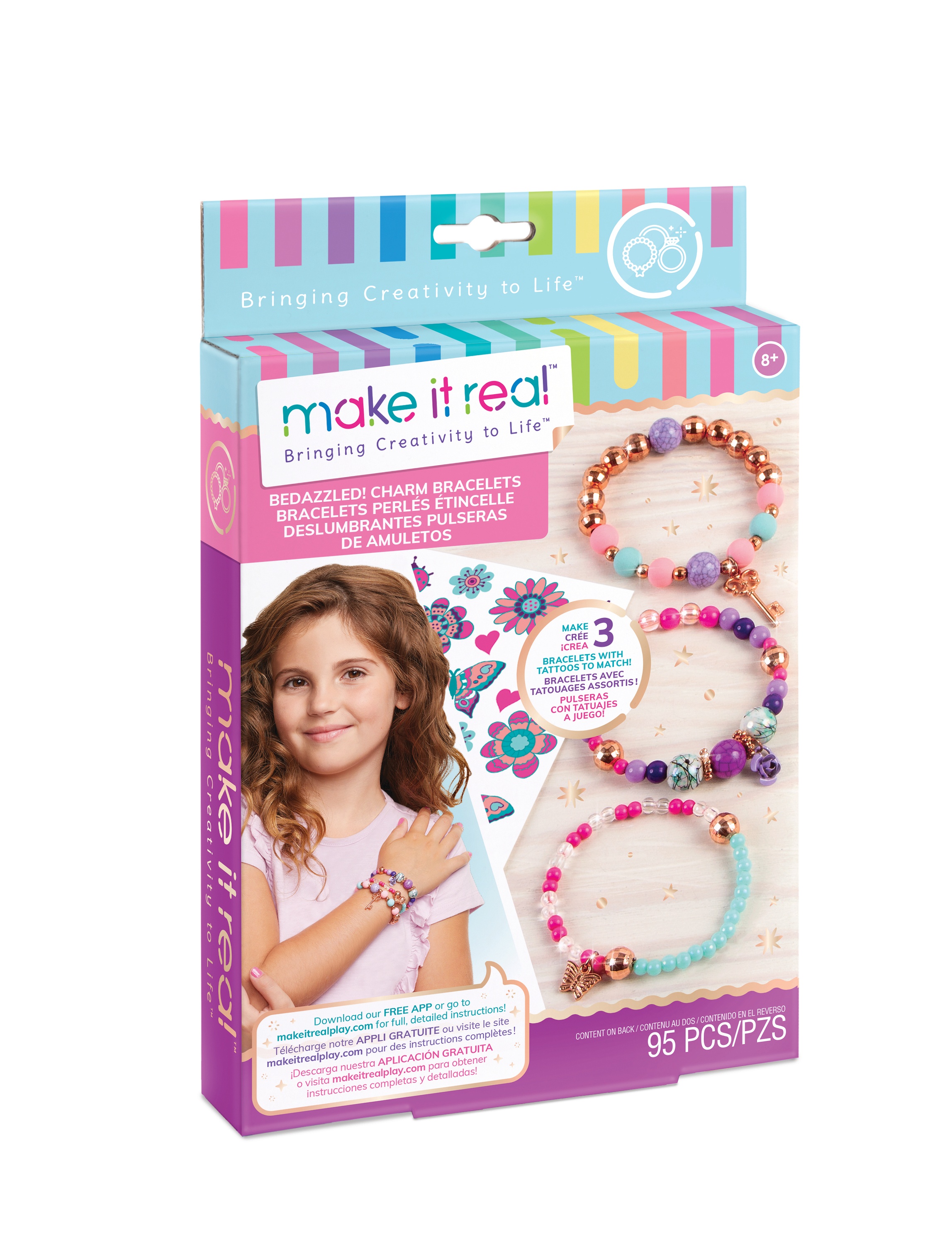 Начинающие дизайнеры браслетов могут начать свой путь с комплекта браслетов Цветочная фантазия Make it Real для поделок. Смешивайте и подбирайте ассортимент из бисера и подвесок, чтобы составить до 3-х красивых браслетов. Также включает в себя полный лист татуировки с татуировками, чтобы украсить себя в одном стиле!