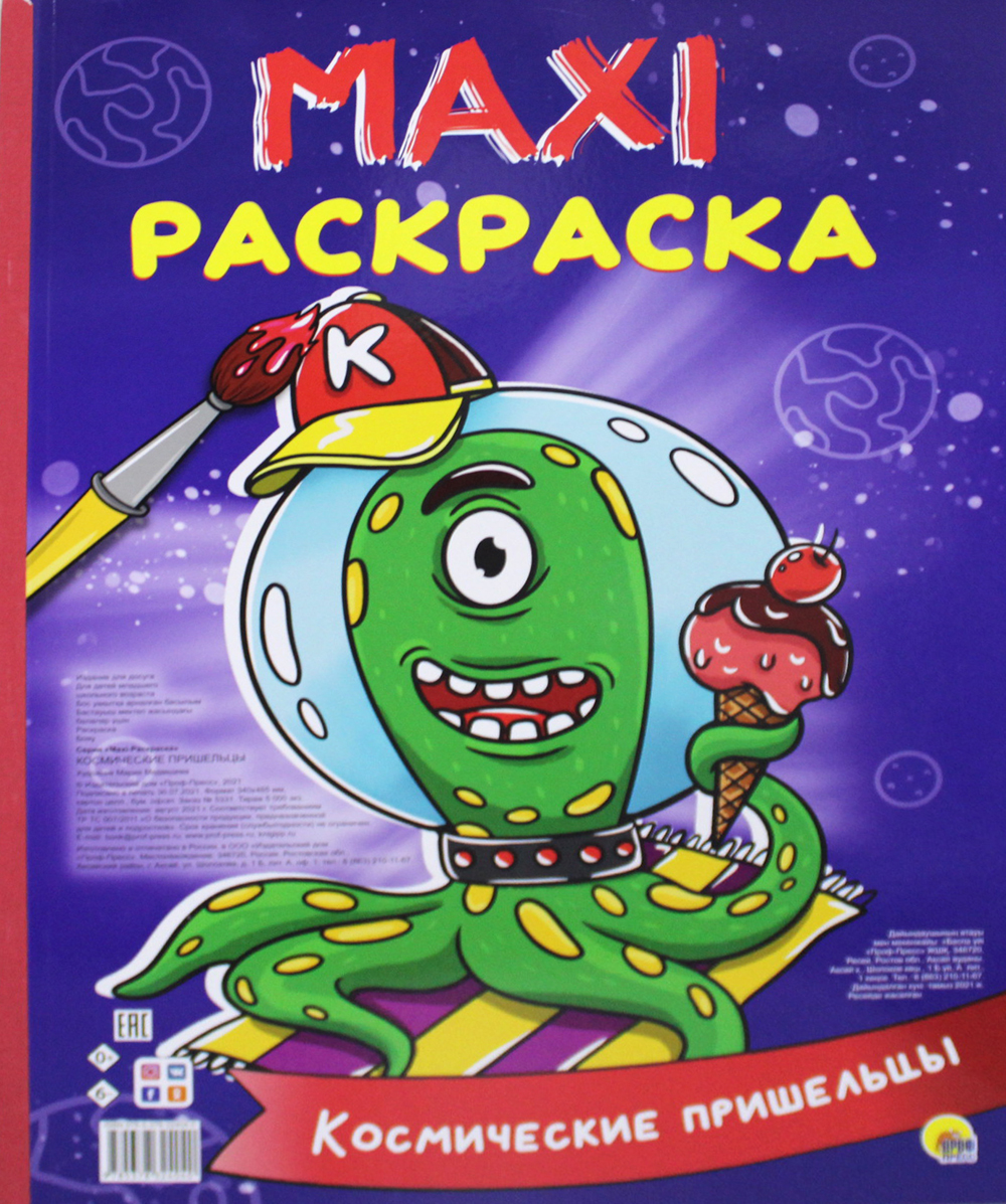 Новая MAXI-раскраска с яркой обложкой и крупными изображениями забавных космических пришельцев вызовет восторг у каждого ребёнка! Благодаря перфорированным листам и твёрдой основе раскраска очень удобна в использовании.
