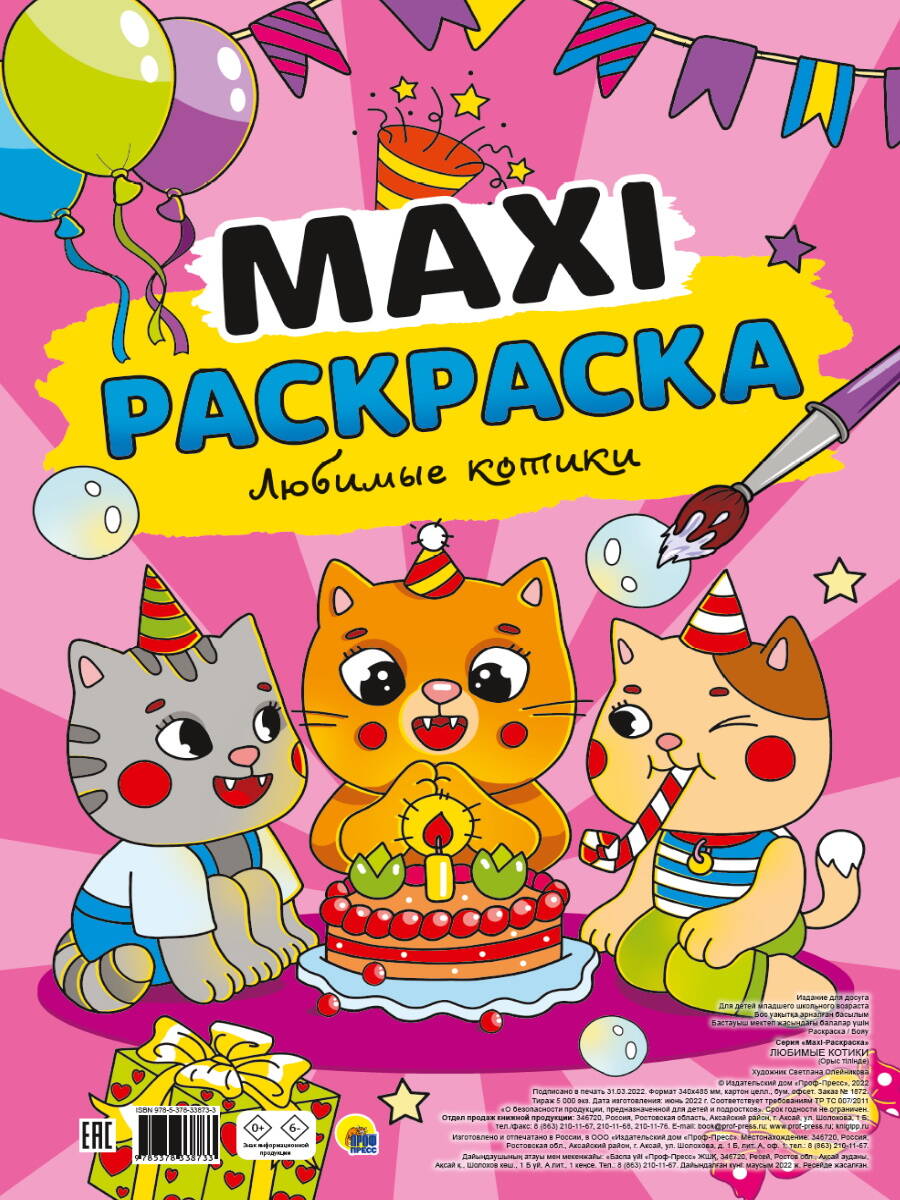 Аннотация: МАКСИ-РАСКРАСКА. ЛЮБИМЫЕ КОТИКИ