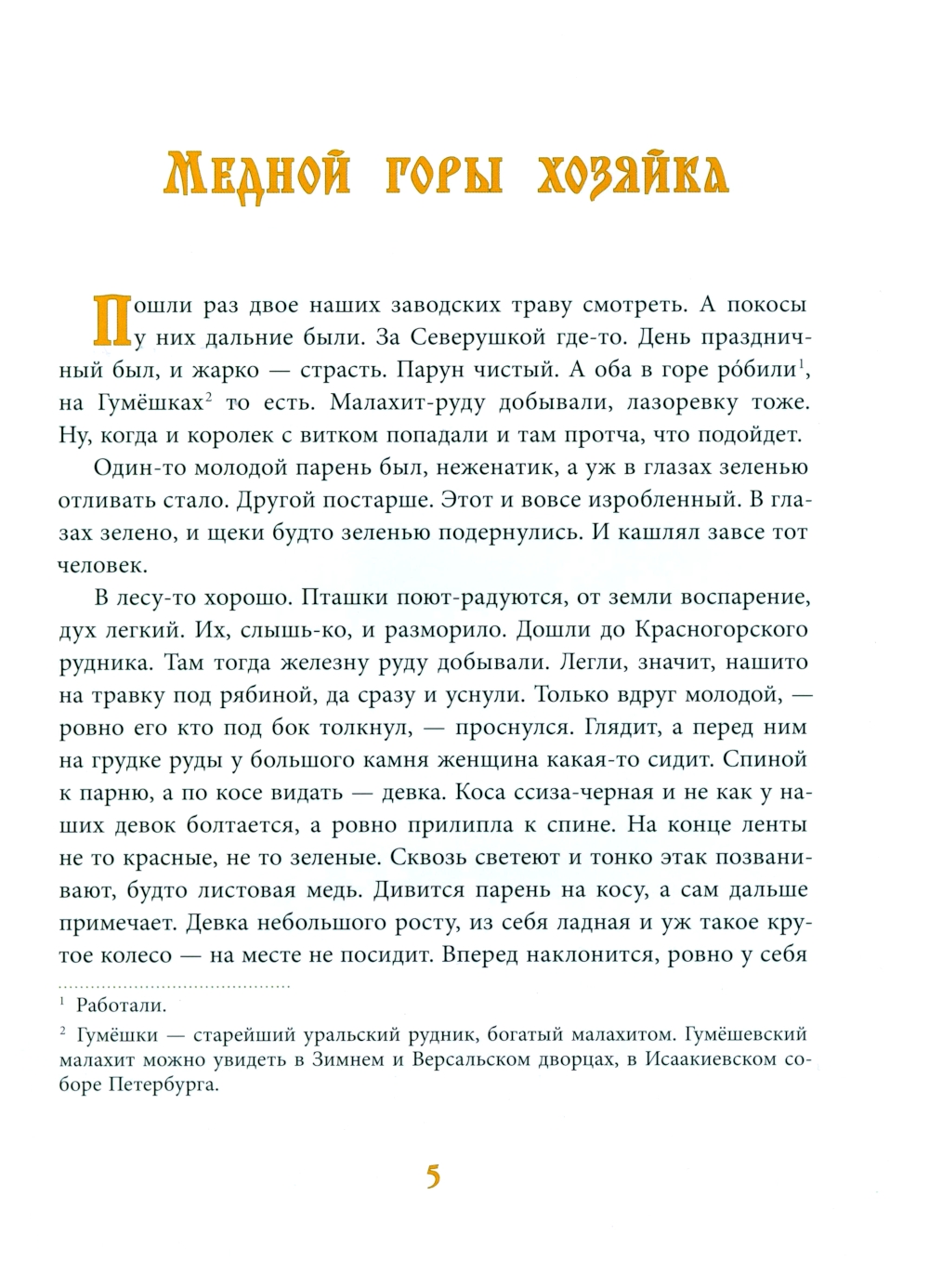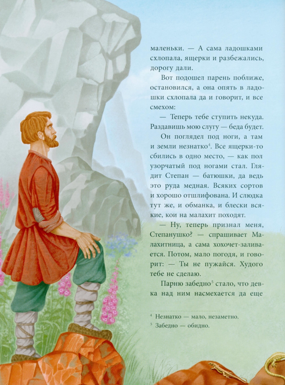 Павел Петрович Бажов (1879-1950) родился на Урале в заводском поселке Сысерть, в семье горного мастера. Детство провел среди старателей и мастеров, добывающих и обрабатывающих малахит и слюду. После окончания духовной семинарии преподавал русский язык в Екатеринбурге, много путешествовал по Уралу, собирал народные былички, легенды и сказки. На этом материале и были созданы знаменитые Бажовские сказы, произведения, в которых неразрывно переплетены правда и вымысел. Сказ Павла Бажова «Медной горы Хозяйка» наполнен красотой. И красотой природы, и красотой своеобразной неторопливой речи. И, конечно, красотой человеческого характера, красотой сокровищ Урала. «Малахитовая шкатулка» - один из самых известных сказов автора. Это история взросления маленькой девочки, дочери известного старателя и мастера, и превращения ее в гордую и независимую красавицу, которой покровительствует сама Хозяйка Медной горы.| Издательство | Акварель |