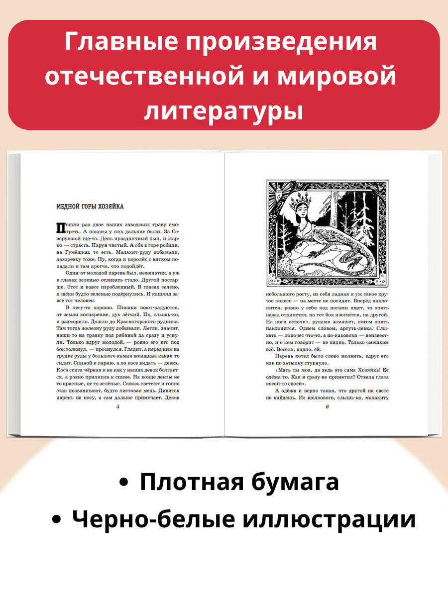 В серии «Детская библиотека» представлены лучшие произведения отечественной и мировой литературы для детей от 5 до 16 лет. Это фольклор и литературные сказки, стихи, рассказы и повести выдающихся писателей-классиков. Все произведения входят в образовательные программы по литературе и рекомендованы Министерством просвещения РФ для изучения в школе и самостоятельного чтения. В книгу Павла Бажова «Малахитовая шкатулка» вошли 18 волшебных сказов: «Медной горы Хозяйка», «Серебряное копытце», «Каменный цветок», «Горный мастер» и другие. На каждой странице рассыпаются перед нами золотые самородки и камни-самоцветы. Но главное сокровище Урала - это люди. Не случайно им помогает всесильная Хозяйка Медной горы. Одному подземные сокровища открывает, другого небывалым умением наделяет. Почему же говорят мастера: «Худому с ней встретиться - горе, и доброму - радости мало»? Иллюстрации Татьяны Ляхович.| Издательство | Эксмо |
