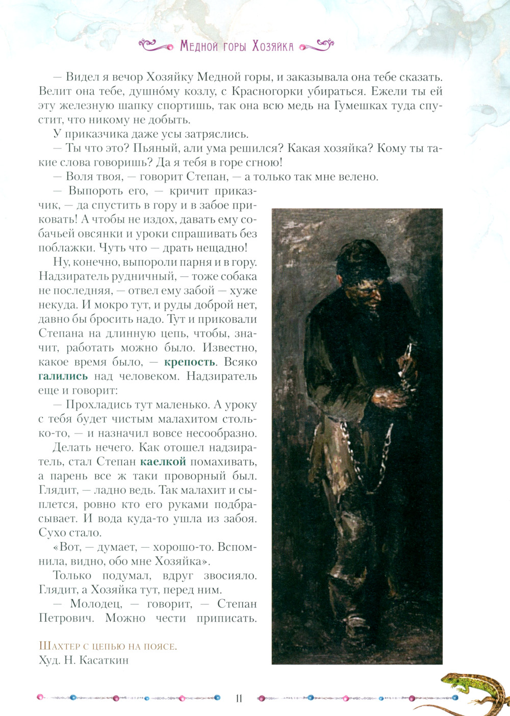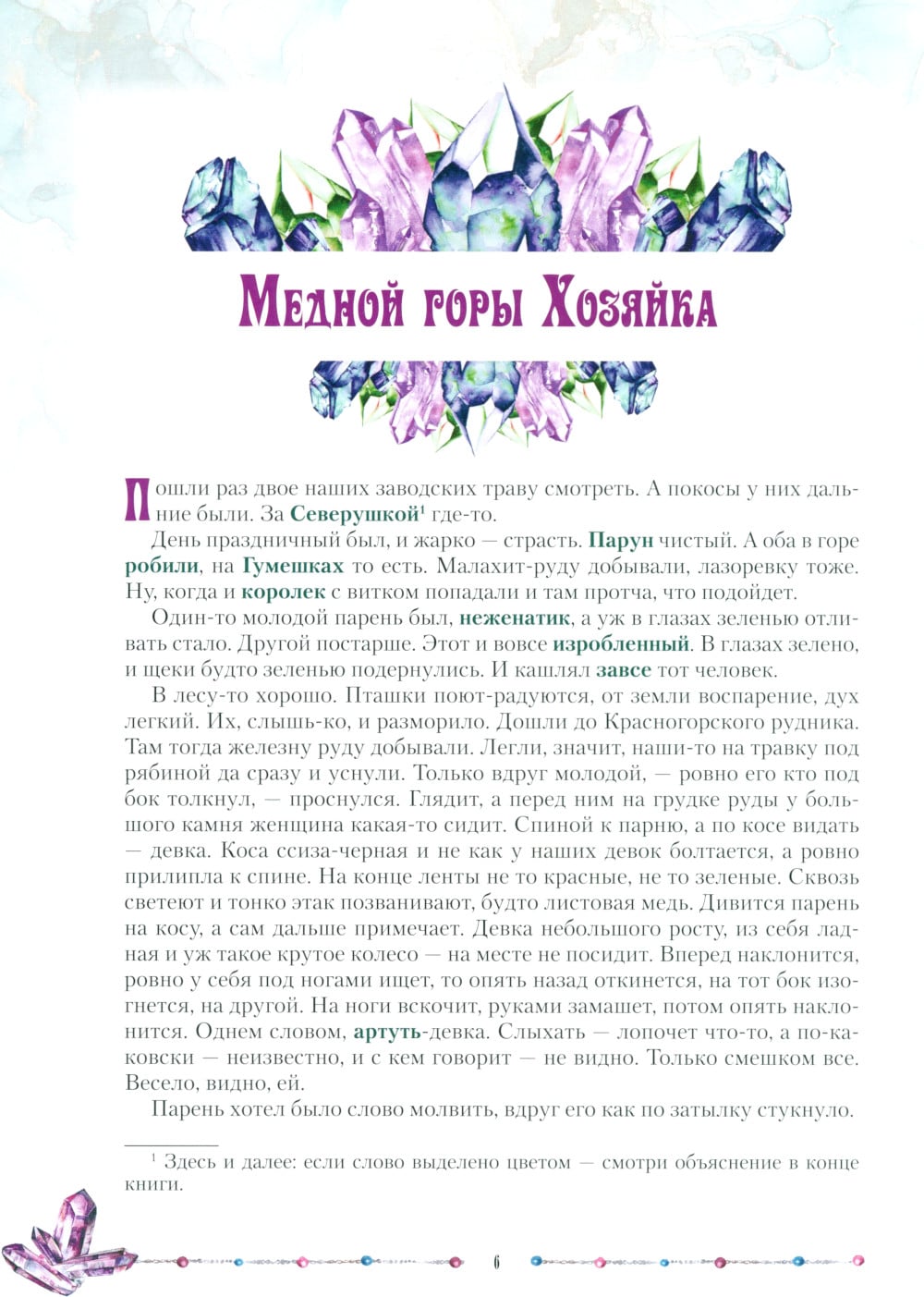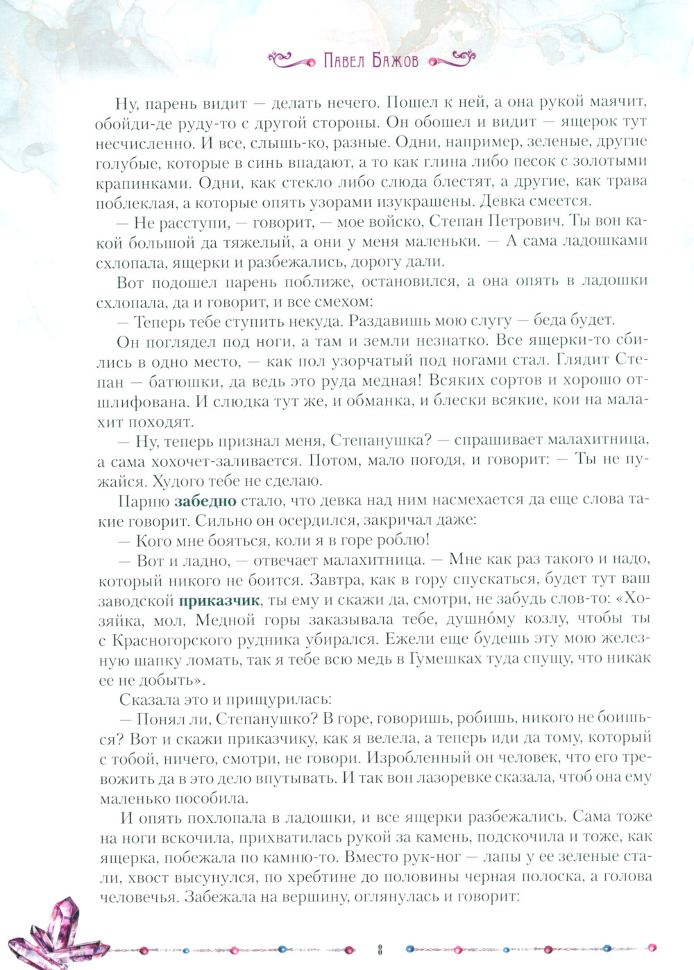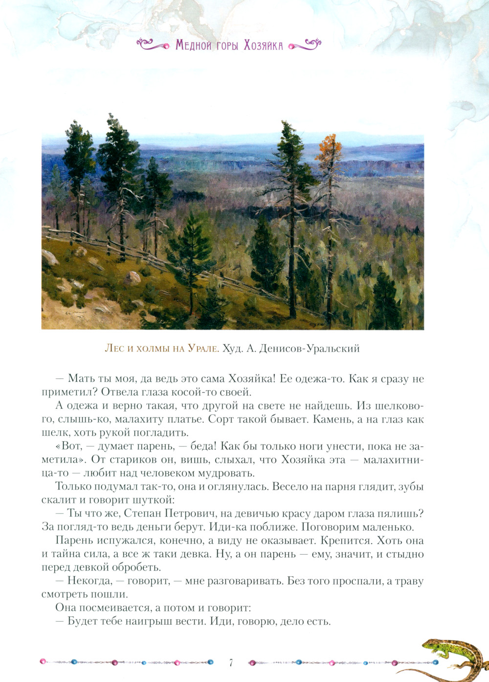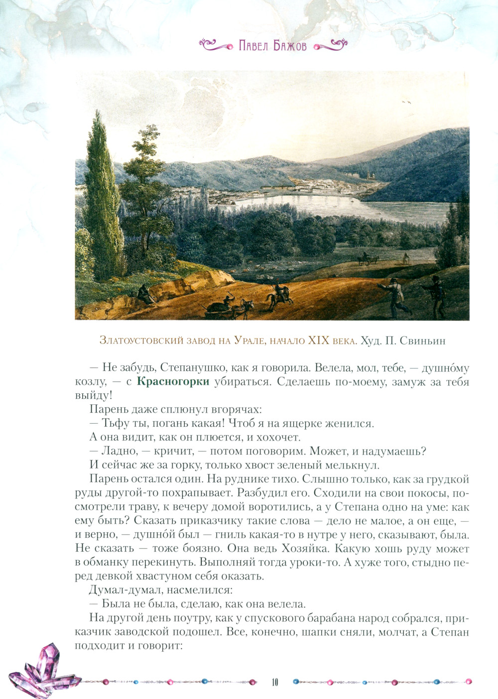 Придуманные Павлом Бажовым «уральские сказы» вобрали в себя отголоски преданий и легенд множества народов, населявших уральскую землю, легенды старателей, мастеров, крестьян этого чудесного края. Данила-мастер и Серебряное копытце, Великий Полоз и Огневушка-Поскакушка и, конечно, Медной горы Хозяйка - все эти герои памятны нам с детства. А прииски Сысерти, земля которой хранит множества сокровищ, от малахита до драгоценных камней, знакомы нам не хуже родного дома. В нашей книге собраны лучшие сказы Павла Бажова, самые знаменитые истории, рожденные Уралом. Особенность нового издания - уникальный иллюстративный ряд из классики русской живописи, который позволит нам не только прочитать эти истории, но и по-настоящему погрузиться в быт и атмосферу сказочного уральского края.| Издательство | Просвещение-Союз |