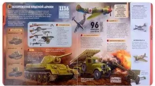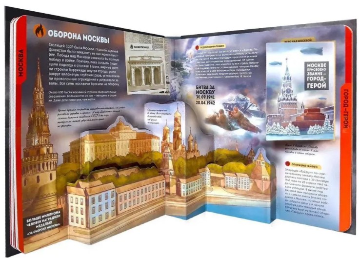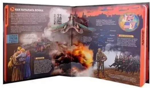 Детально можно увидеть, как выглядела военная техника, оружие, обмундирование солдат. Каждый элемент книги продуман так, чтобы вы ощутили всю мощь этих событий и максимально погрузились в атмосферу того времени, пережили радость Великой Победы!