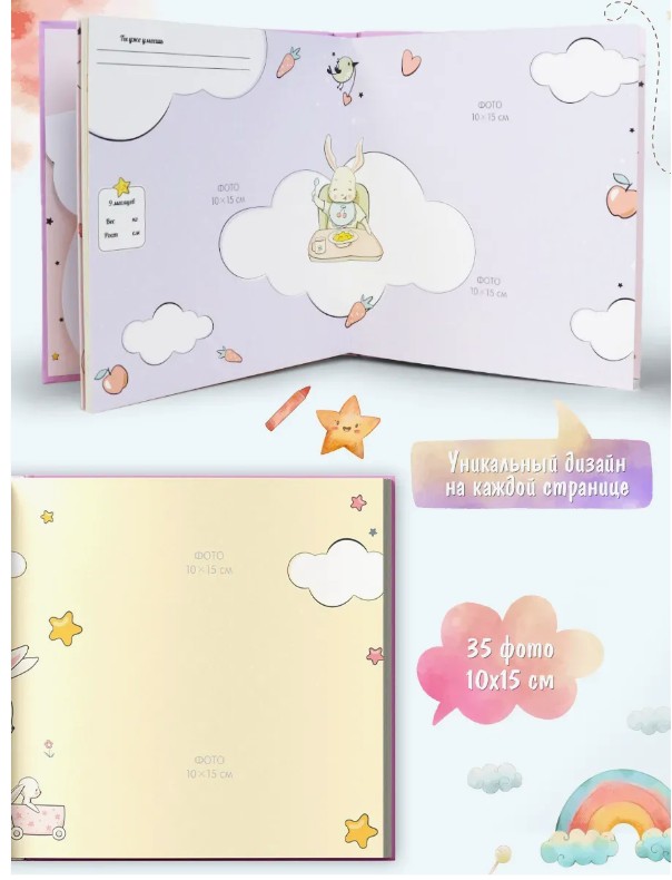 «Мой малыш» и «Моя малышка» от торговой марки Malamalama - это роскошные фотоальбомы, которые с лёгкостью станут первым фотоальбомом новорождённого малыша. Мягкая, приятная на ощупь обложка, яркое, но лаконичное тиснение делают их украшением любой полки, а плотный картон повзолит сохранить удивительные моменты жизни надолго! Внутри альбомов - большой милый POP-UP, добрые иллюстрации и удобные отверстия, в которые можно вставлять фотографии. Это поможет сохранить фотографии нетронутыми: не нужно их вырезать или приклеивать, можно вставлять и доставать сколько угодно раз. А для того, чтобы добавить ещё и своих эмоций или важной информации о малыше, на страницах предусмотрены плашки для текста: для записи роста и веса, для свободных комментариев, для написания пожеланий. Фотоальбомы «Мой малыш» и «Моя малышка» от торговой марки Malamalama - идеальный способ сохранить самые тёплые воспоминания на долгие годы!