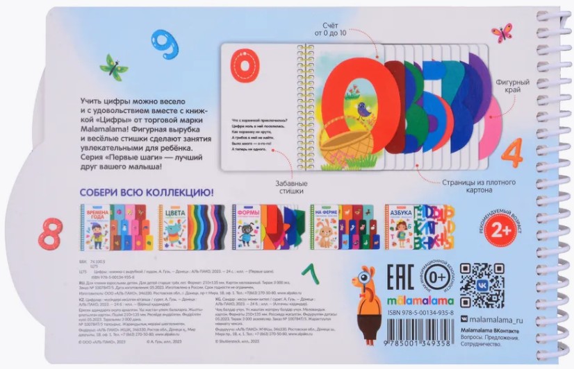 Книжка "Цифры" из серии "Первые шаги" отлично сочетает в себе классическую подачу информации и современный формат. Забавные простые стишки и красочные иллюстрации помогут ребёнку выучить цифры и освоить счёт, а странички с фигурным краем дадут возможность потренировать мелкую моторику и сделают занятия интересными и увлекательными. Серия "Первые шаги" - лучший друг вашего малыша!