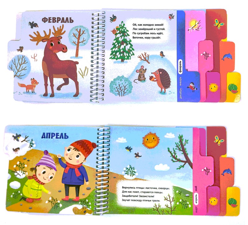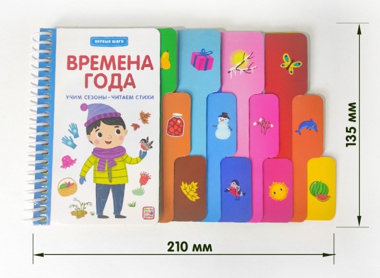 Книжка "Времена года" из серии "Первые шаги" отлично сочетает в себе классическую подачу информации и современный формат. Забавные простые стишки и красочные иллюстрации помогут ребёнку выучить названия месяцев, их порядок и времена года, к которым они относятся, а странички с фигурным краем дадут возможность потренировать мелкую моторику и сделают занятия интересными и увлекательными. Серия "Первые шаги" - лучший друг вашего малыша!