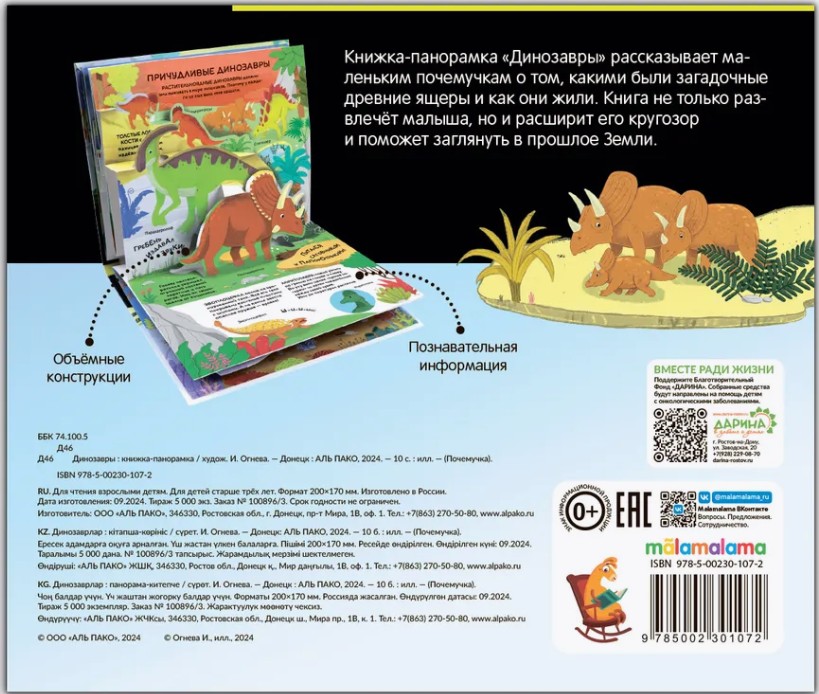 Энциклопедия «Динозавры» из серии «Почемучка» от торговой марки Malamalama открывает маленьким исследователям двери в удивительный мир знаний. Книга поможет развить любознательность, расширить кругозор и познакомить с новой информацией в доступной форме. Благодаря ярким и красочным картинкам, а также объёмным иллюстрациям, малыши смогут легко и с интересом изучить виды динозавров, их особенности и образ жизни. «Почемучка» станет незаменимым помощником в обучении и развитии детей, подарив им радость открытий и жажду знаний.