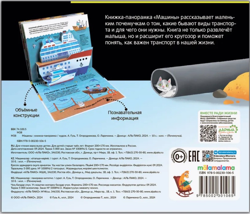 Энциклопедия «Машины» из серии «Почемучка» от торговой марки Malamalama открывает маленьким исследователям двери в удивительный мир знаний. Книга поможет развить любознательность, расширить кругозор и познакомить с новой информацией в доступной форме. Благодаря ярким и красочным картинкам, а также объёмным иллюстрациям, малыши смогут легко и с интересом изучить виды транспорта и их применение в разных сферах жизни. «Почемучка» станет незаменимым помощником в обучении и развитии детей, подарив им радость открытий и жажду знаний.
