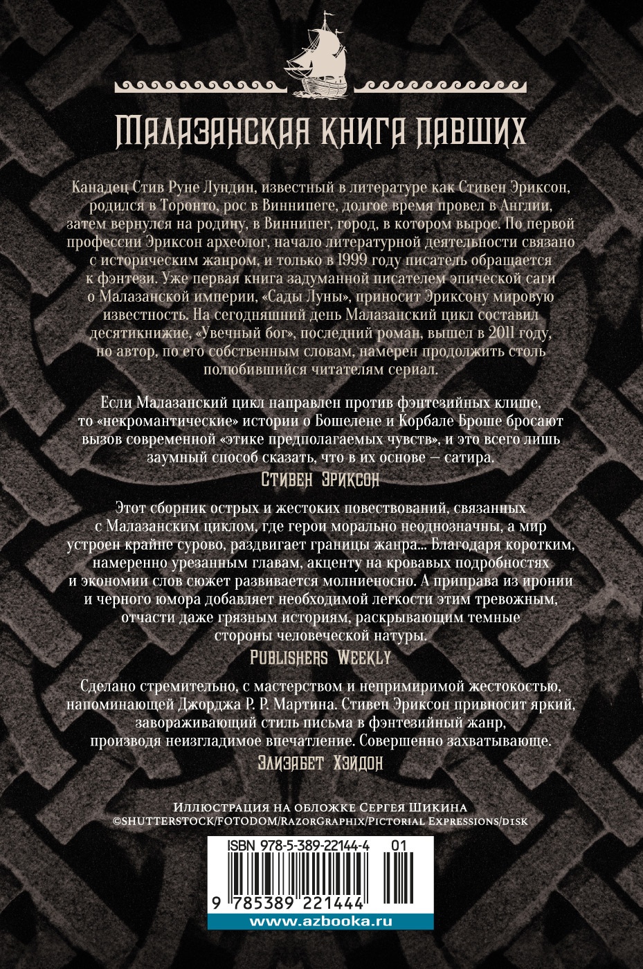Стивен Эриксон, создатель знаменитого Малазанского цикла («Малазанская книга павших»), оцененного по достоинству как читателями, так и признанными мастерами фэнтезийного жанра, вновь ведет нас по запутанным тропам своей вселенной, где искусство магии столь же обыденно, как в нашем мире самолет и автомобиль. Шесть историй о Бошелене и Корбале Броше, двух странствующих чародеях-некромантах, и их горемычном слуге Эмансипоре Ризе ввергнут нас в такую бездну страстей, что мало не покажется никому. Герои наши не отличаются благонравием, ведь в мире, который их окружает, нет места сентиментальности и доверчивости, здесь надо держать ухо востро, чтобы тебя не съели - и в переносном, и в прямом смысле. Им, правда, по роду деятельности помогают души умерших, способные прорицать будущее, - но не всегда и без особой охоты, так что лучше надеяться на себя, на удачу и на попутный ветер. Впервые на русском!| Издательство | Азбука |