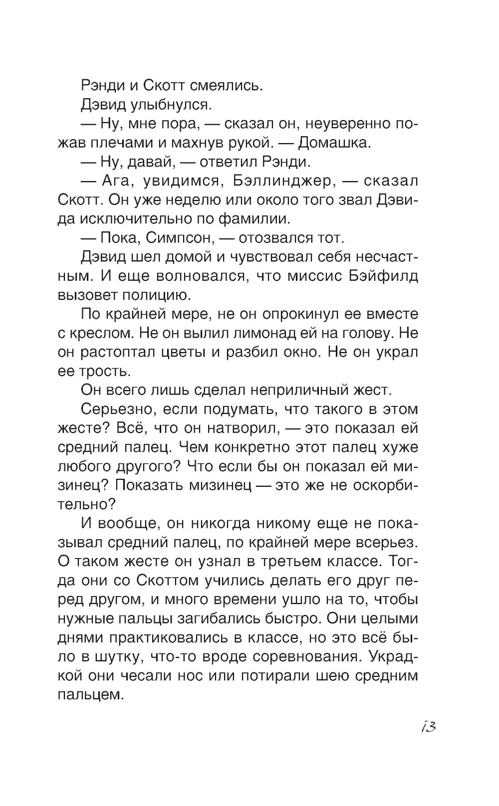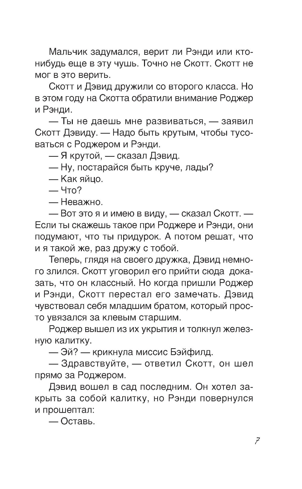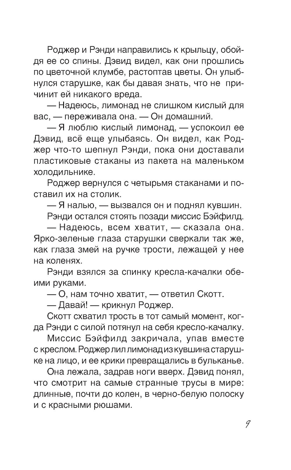 Сейчас Луис Сашар - известный детский писатель, лауреат Национальной книжной премии в США (National Book Award) и обладатель Медали Джона Ньюбери в области детской литературы. Мог ли он предполагать такое развитие событий, когда учился на экономическом, а после - на юридическом факультетах? Но в это же время Сашару довелось преподавать в начальной школе. Работа с детьми произвела на него большое впечатление и послужила толчком к написанию книг. Чтобы доказать ребятам, что он такой же крутой, как они, Дэвид идет с ними к одинокой старухе миссис Бэйфилд и помогает выкрасть ее трость. Уже на следующий день его начинают одолевать неприятности. Что это: простое совпадение или жуткое проклятие миссис Бэйфилд? Для среднего и старшего школьного возраста.| Издательство | Качели |