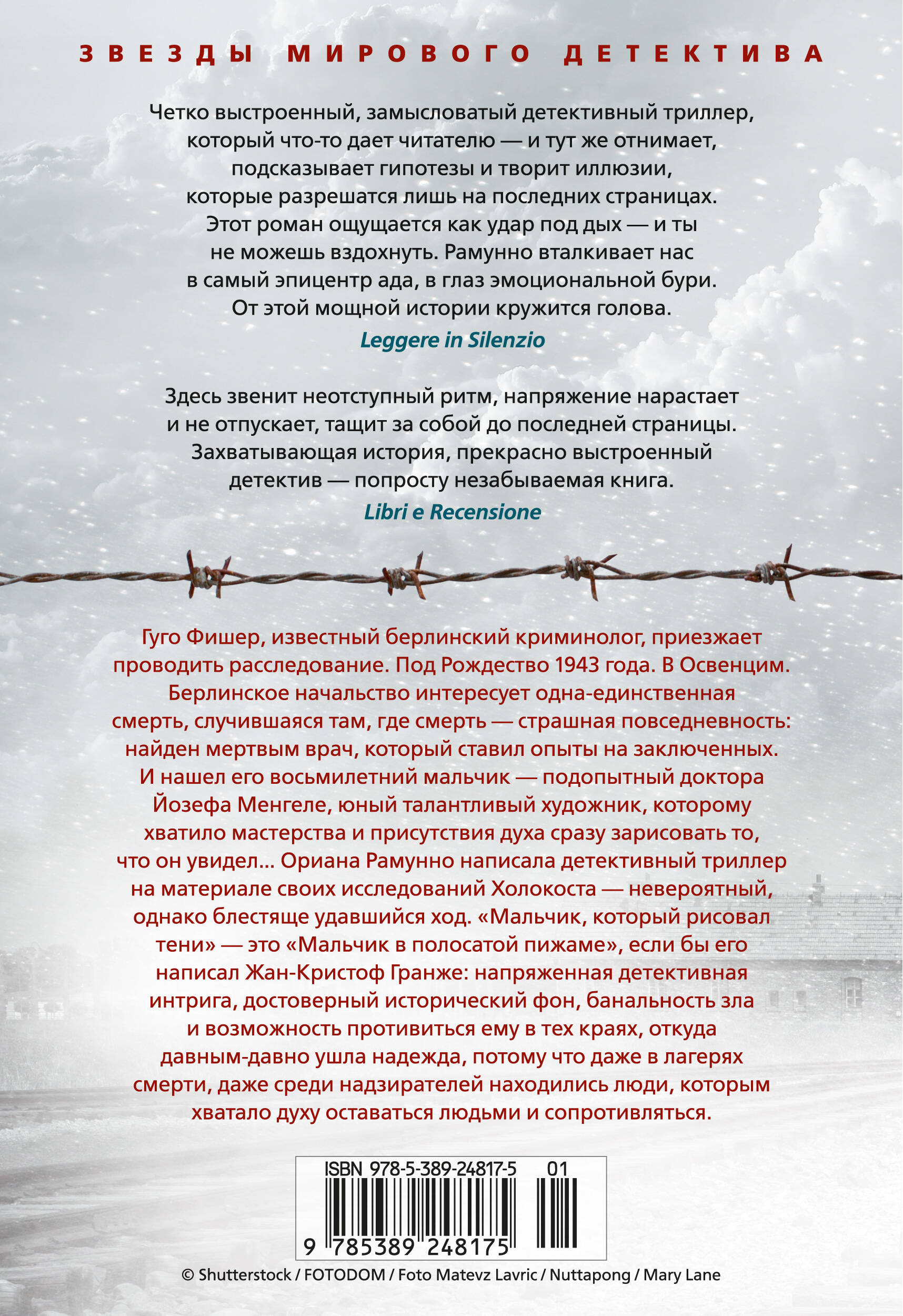 Гуго Фишер, известный криминолог, приезжает проводить расследование. Под Рождество 1943 года. В Освенцим. Предыдущие десять лет Гуго провел в Берлине, где на происходящее в концлагерях в основном закрывали глаза: страшные слухи по городу, конечно, ходили, но разумные люди не станут верить слухам, правда? И теперь Гуго сталкивается с ужасом, к которому он, человек незлой и отнюдь не боец, совершенно не готов. Между тем берлинское начальство интересует одна-единственная смерть, случившаяся там, где смерть - страшная повседневность: найден мертвым врач, который ставил опыты на заключенных. И нашел его восьмилетний мальчик - подопытный доктора Йозефа Менгеле, юный талантливый художник, которому хватило мастерства и присутствия духа сразу зарисовать то, что он увидел. Еврейский ребенок из Болоньи, криминолог из берлинской уголовной полиции, которому есть что скрывать, - странный дуэт, расследующий странную смерть в страшном краю, - и целая толпа возможных подозреваемых, тоже скрывающих каждый свою тайну. Ориана Рамунно написала детективный триллер на материале своих исследований Холокоста - невероятный, однако блестяще удавшийся ход. "Мальчик, который рисовал тени" - это "Мальчик в полосатой пижаме", если бы его написал Жан-Кристоф Гранже: напряженная детективная интрига, достоверный исторический фон, банальность зла и возможность противиться ему в тех краях, откуда давным-давно ушла надежда. Рамунно черпала материал в том числе из биографии своего двоюродного деда, побывавшего в лагере смерти и запомнившего, что даже в этом аду, даже среди надзирателей находились люди, которым хватало духу оставаться людьми и сопротивляться. Впервые на русском!