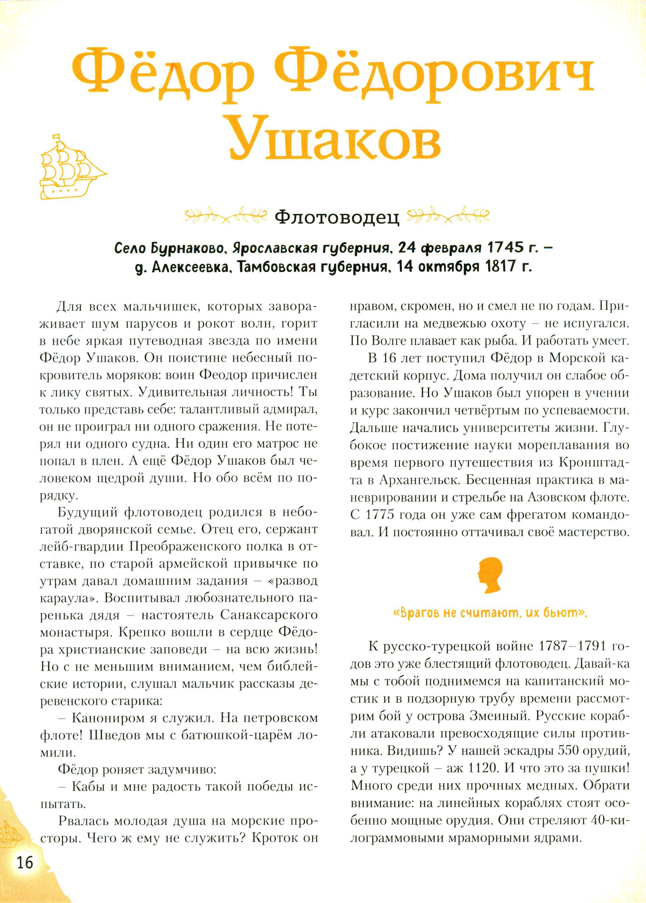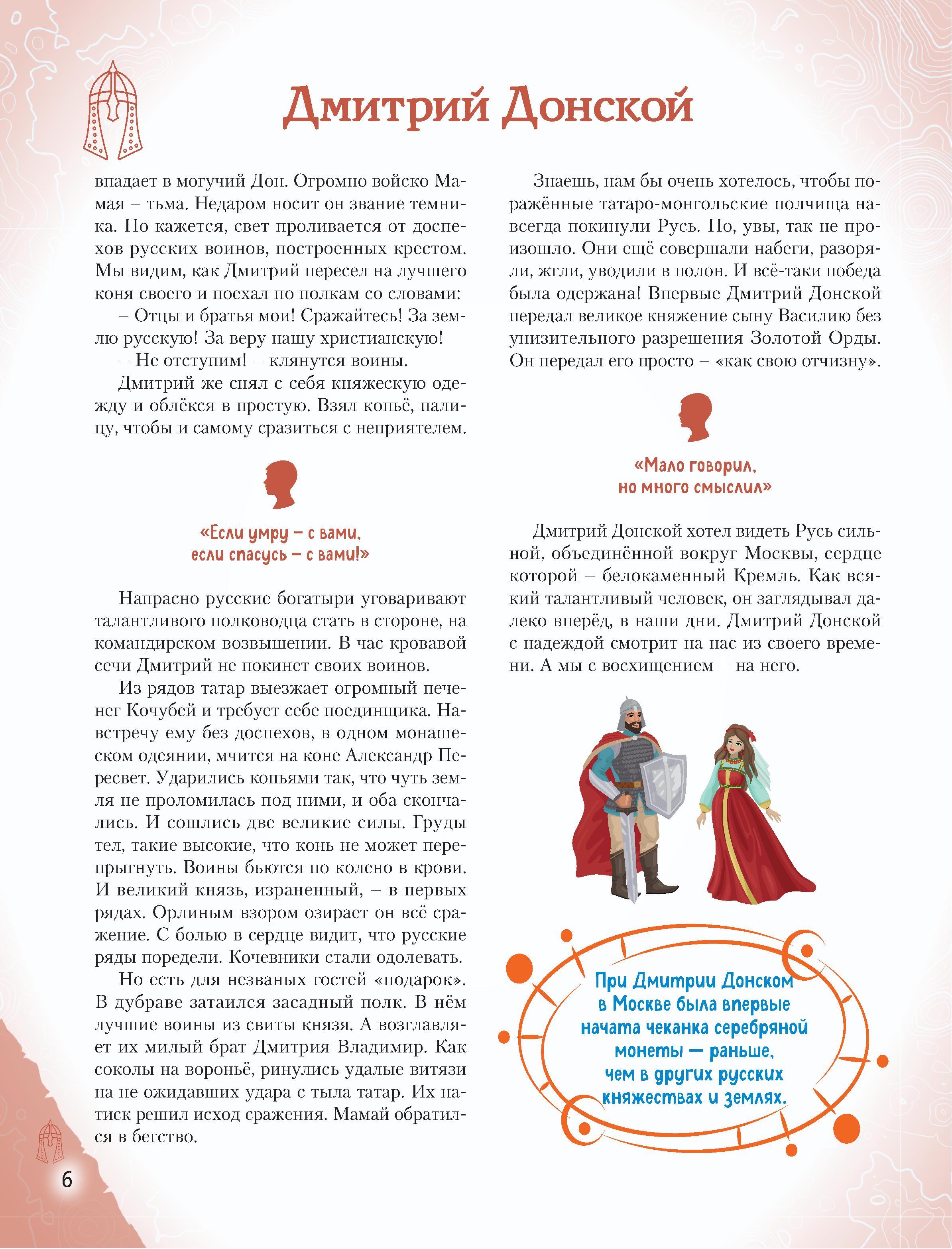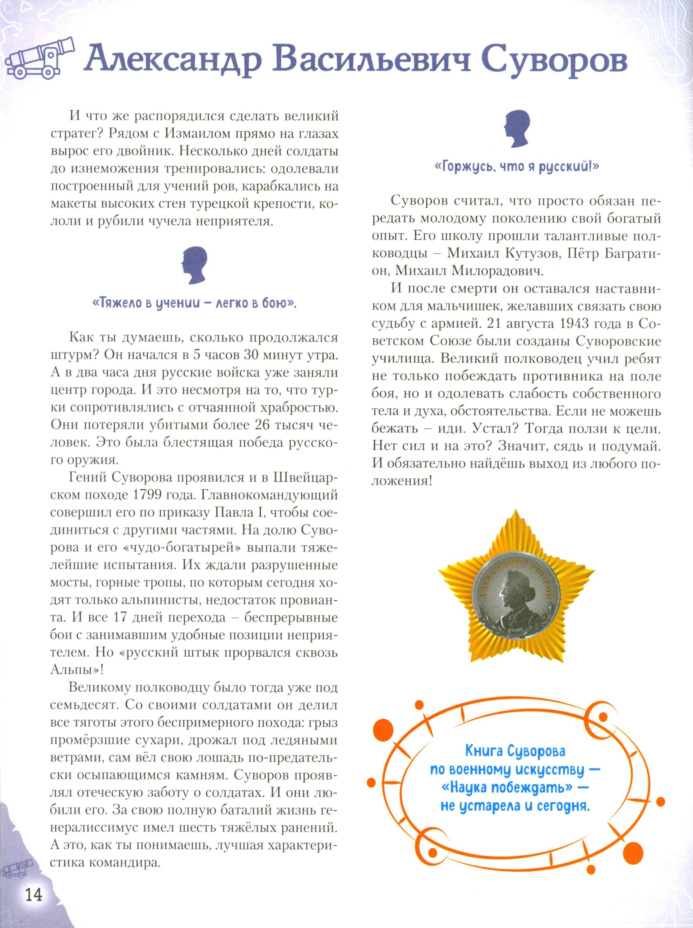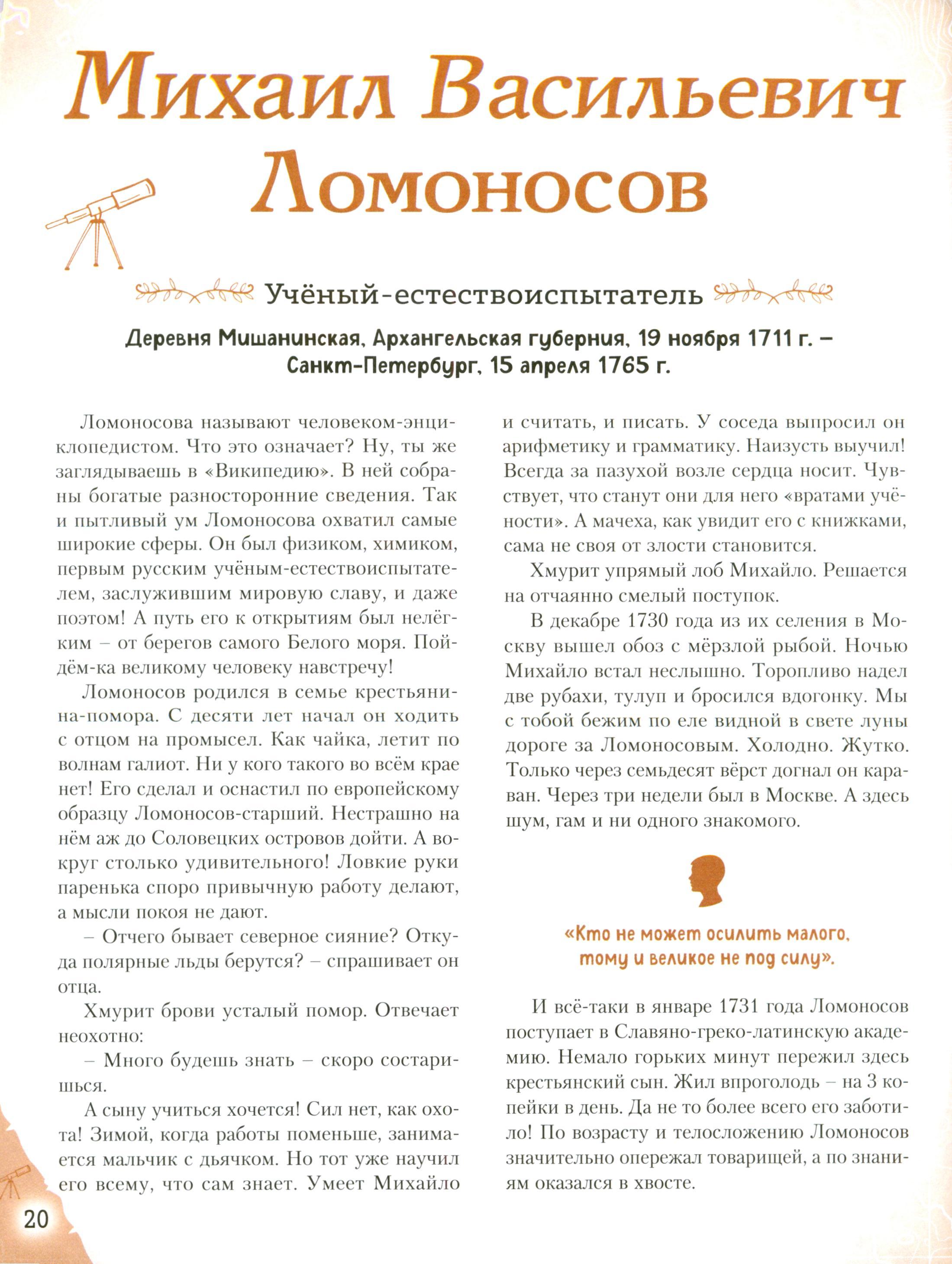 Отправляйтесь в захватывающее путешествие по разным эпохам нашей страны! Вы хотите познакомить вашего ребёнка с известными людьми России - Петром I и Суворовым, Пушкиным и Чайковским, Ломоносовым и Гагариным? Узнать, во что играли будущие исторические личности? Чем увлекались в детстве? Как искали свою судьбу, искали себя на нелёгких жизненных дорогах? Ведь они так же, как и все мы, одолевали за партой неподдающиеся науки, отстаивали собственное мнение в спорах; у них были свои детские огорчения и радости. И далеко не всё получалось с первого раза... Тогда открывайте эту книгу! В каждом из 20 биографических рассказов, адаптированных для детей 7-10 лет, - невероятный образец силы воли и стойкости характера, мотивирующий ребят на собственные свершения. Их сопровождают красочные полосные иллюстрации и занимательные факты, чтобы знакомиться с выдающимися соотечественниками было наглядно и увлекательно. А ещё это неповторимый подарок для всех, кто гордится историей и культурой своего Отечества!| Издательство | Эксмо |