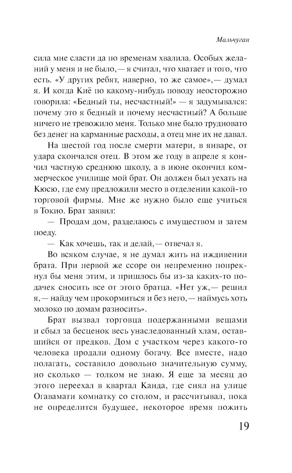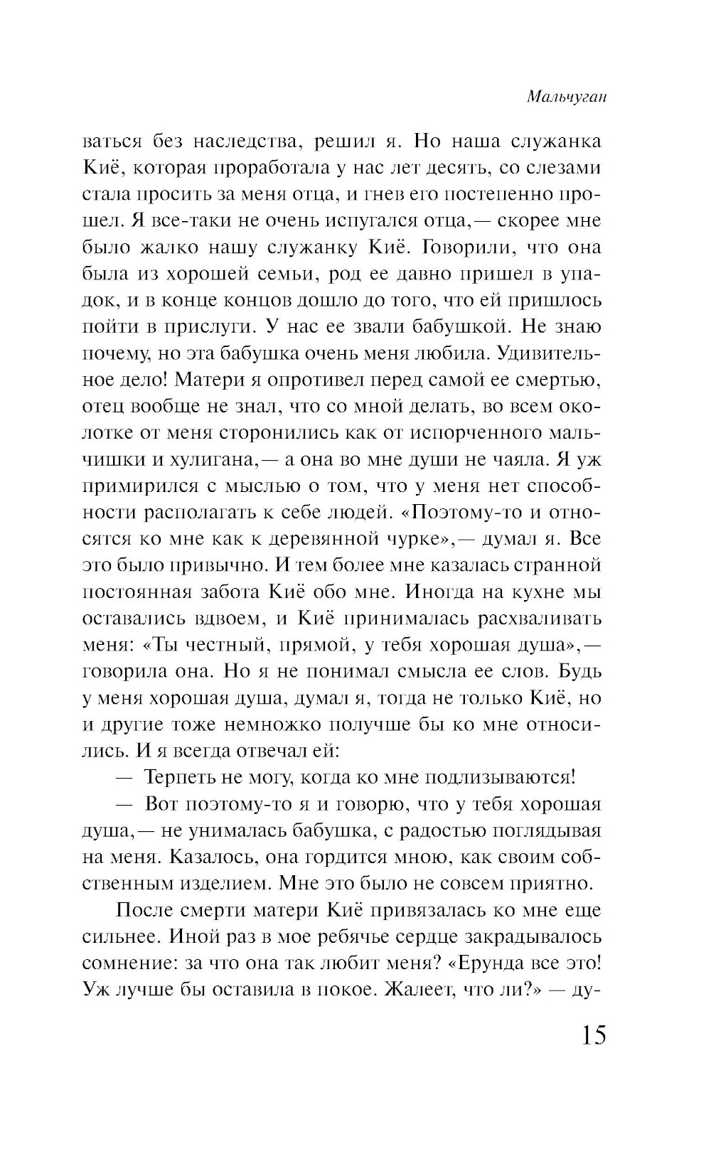 «Мальчуган» - одна из ранних повестей знаменитого японского писателя Нацумэ Сосэки, которая принесла ему популярность и сделала его имя известным в литературных кругах Японии. Юноша-максималист, личность которого только формируется, смотрит на взрослый, живущий по своим законам мир. В силу возраста и характера, мальчуган прямолинеен и открыт новому, однако, окружающие и взрослые видят его недальновидным, а порой глуповатым. Герой живёт в непростое время: эпоха Мейдзи - период стремительных перемен, когда появляются новые взгляды и идеи, и на фоне этого молодому человеку приходится определять для себя, что правильно, а что нет, и каким идеалам стоит следовать.| Издательство | Эксмо |