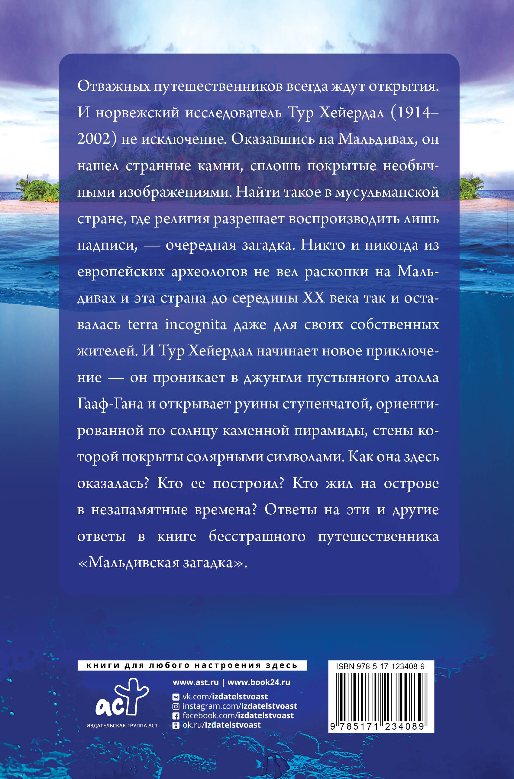 До середины ХХ века никто из европейских археологов не вел раскопки на Мальдивах, и эта страна оставалась terra incognita даже для своих собственных жителей. Но норвежский исследователь Тур Хейердал (1914-2002) начинает новое приключение - он проникает в джунгли пустынного атолла Гааф-Ган и открывает руины ступенчатой, ориентированной по солнцу каменной пирамиды, стены которой покрыты солярными символами. Как она здесь оказалась? Кто ее построил? Кто жил на острове в незапамятные времена? Эти и другие ответы в книге бесстрашного путешественника "Мальдивская загадка".| Издательство | ИЗДАТЕЛЬСТВО "АСТ" |