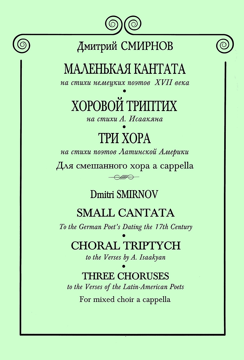 Аннотация: Маленькая кантата. Хоровой. Три хора на стихи поэтов Латинской Америки. Для смешанного хора a cappella