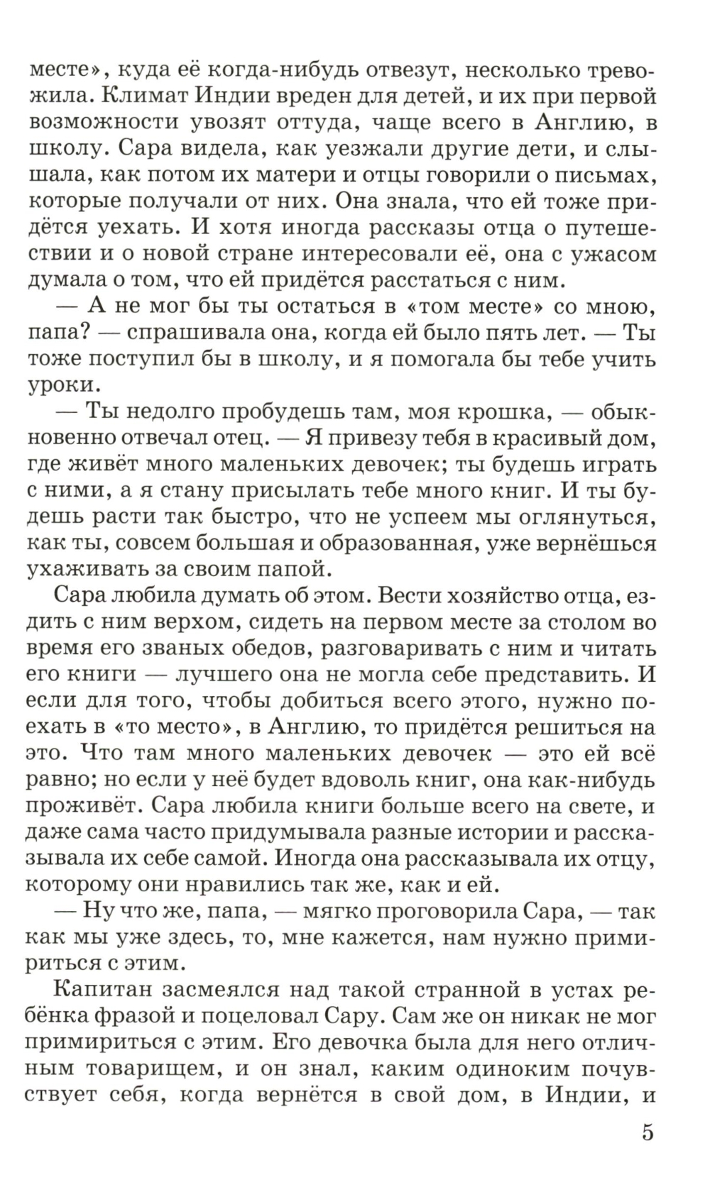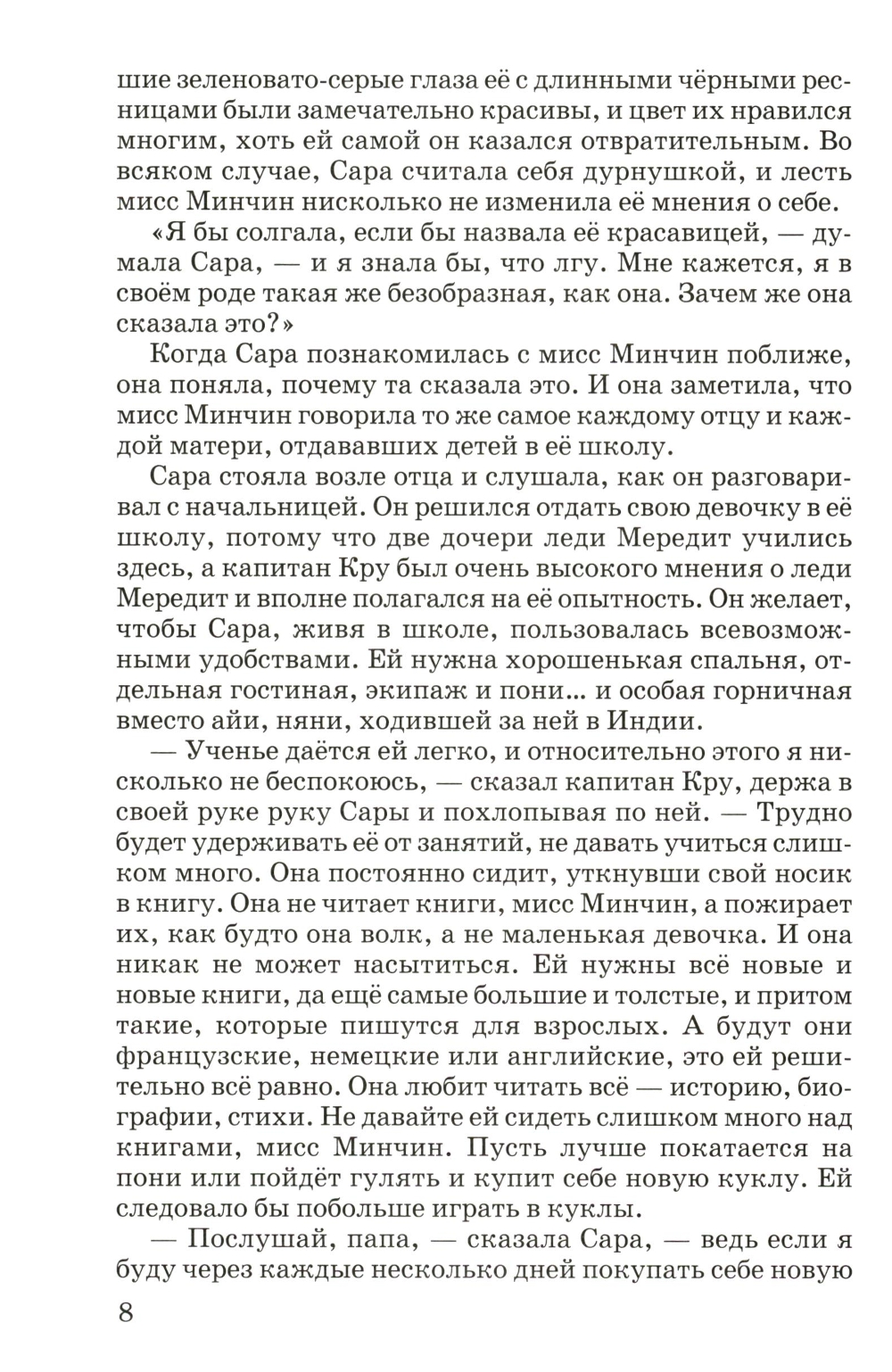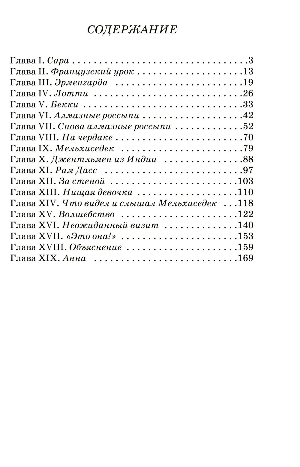 Трогательная, щемящая история семилетней девочки, которая с раннего детства жила в достатке и атмосфере доброты. За ее красоту и душевную щедрость все называли ее принцессой. Однако после смерти отца она, став нищенкой, сразу ощутила к себе иное отношение, порой даже жестокое. Но благодаря стойкости характера и душевному величию она сумеет преодолеть все невзгоды, не утратив своих лучших качеств. И ее снова будут называть принцессой. Повесть написана Фрэнсис Бернетт более ста лет назад, но сегодня, в век стяжательства и потери части духовных ценностей она становится еще более актуальна и востребована. Для среднего школьного возраста.| Издательство | Искателькнига |