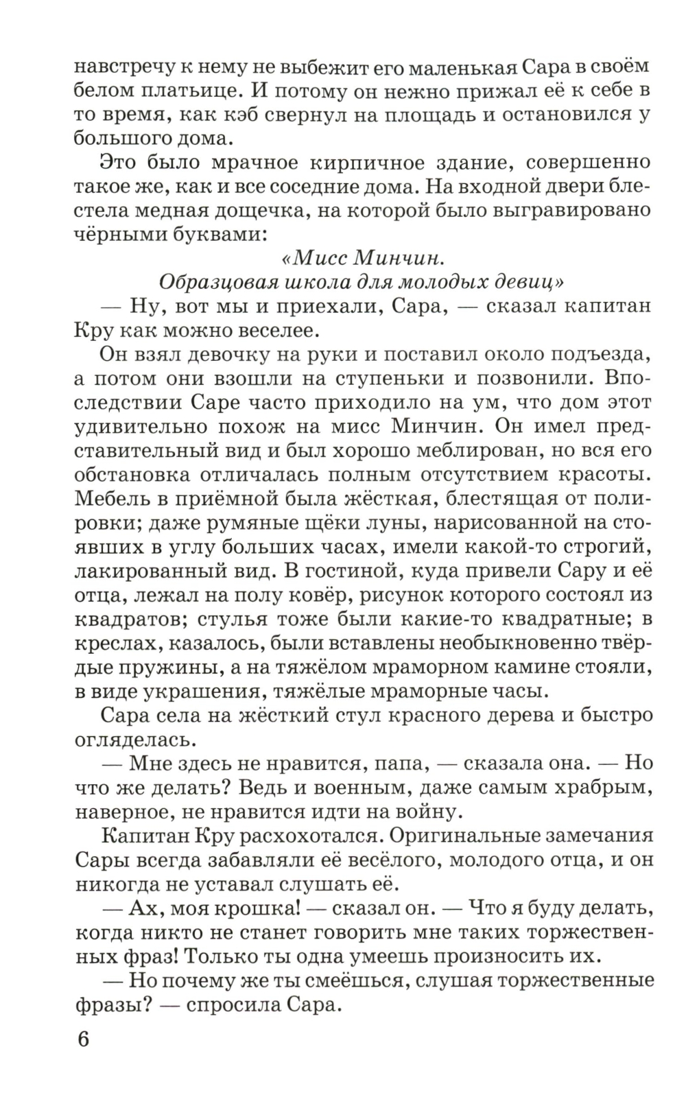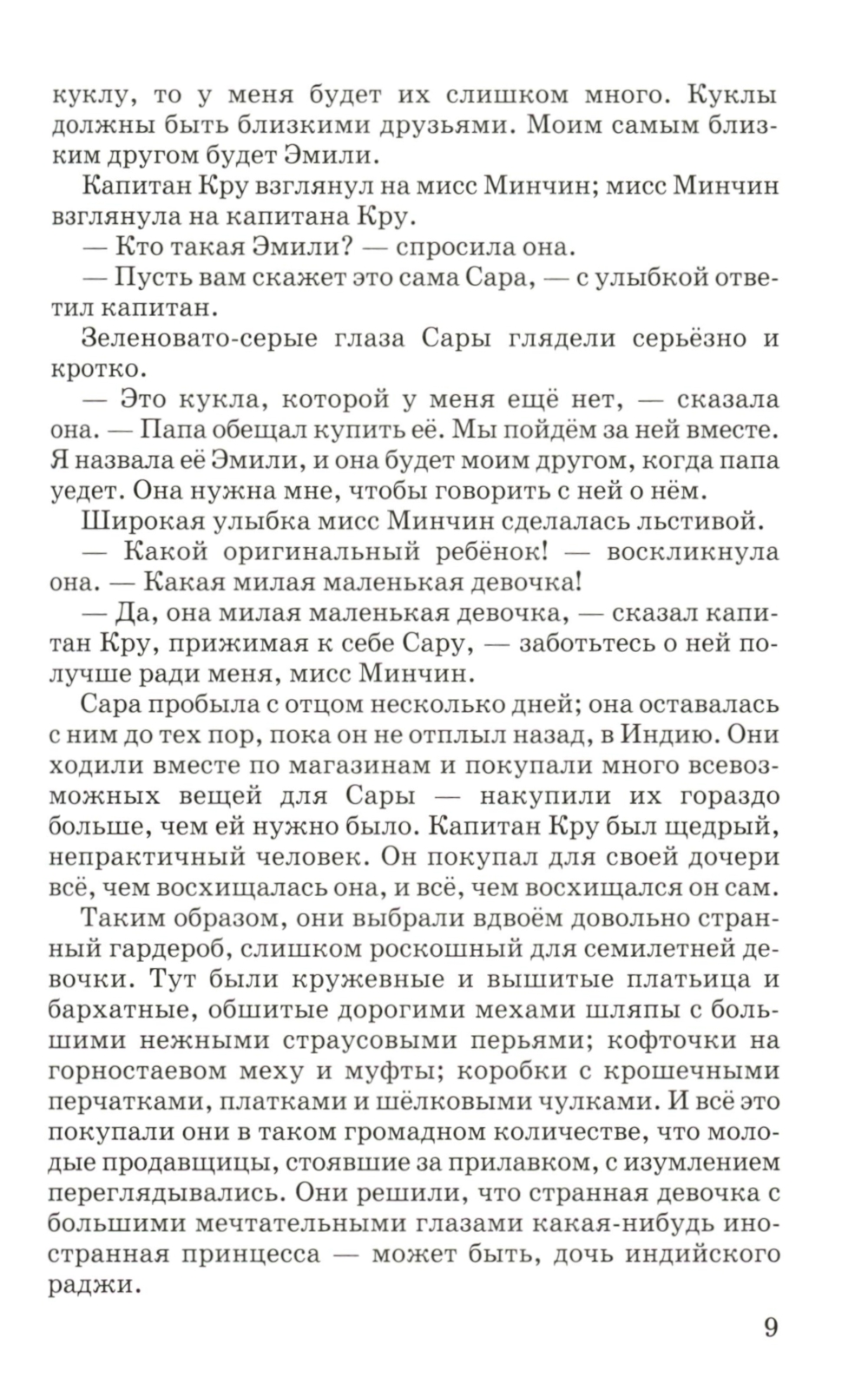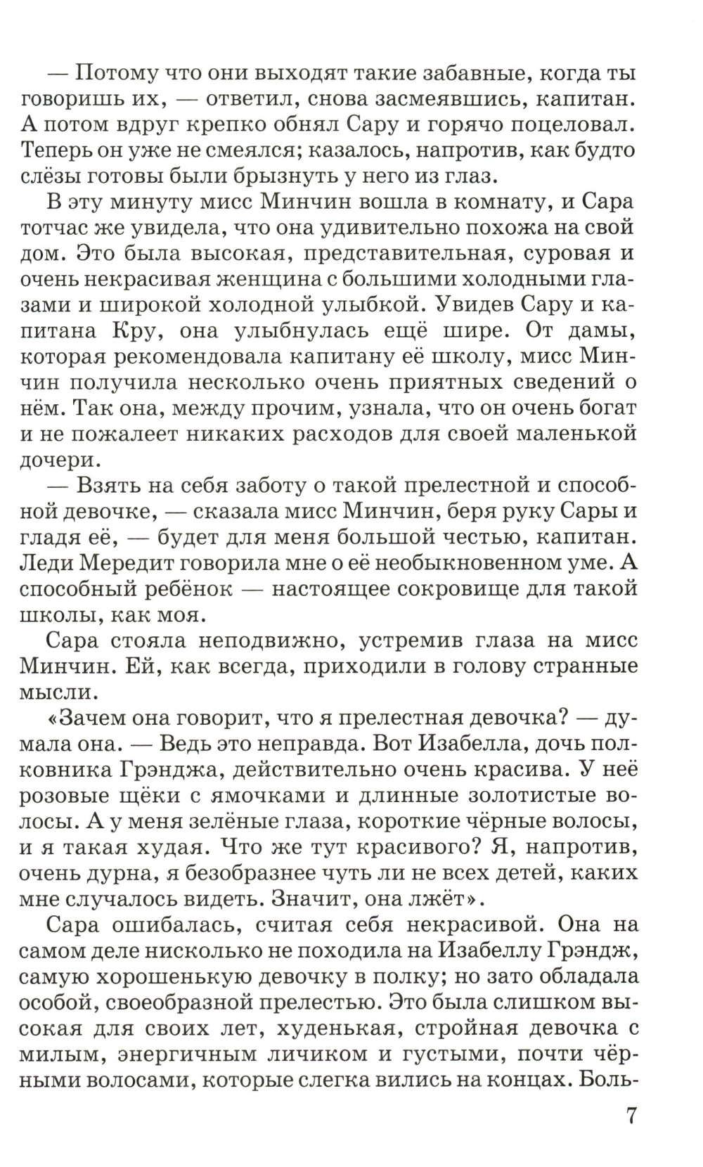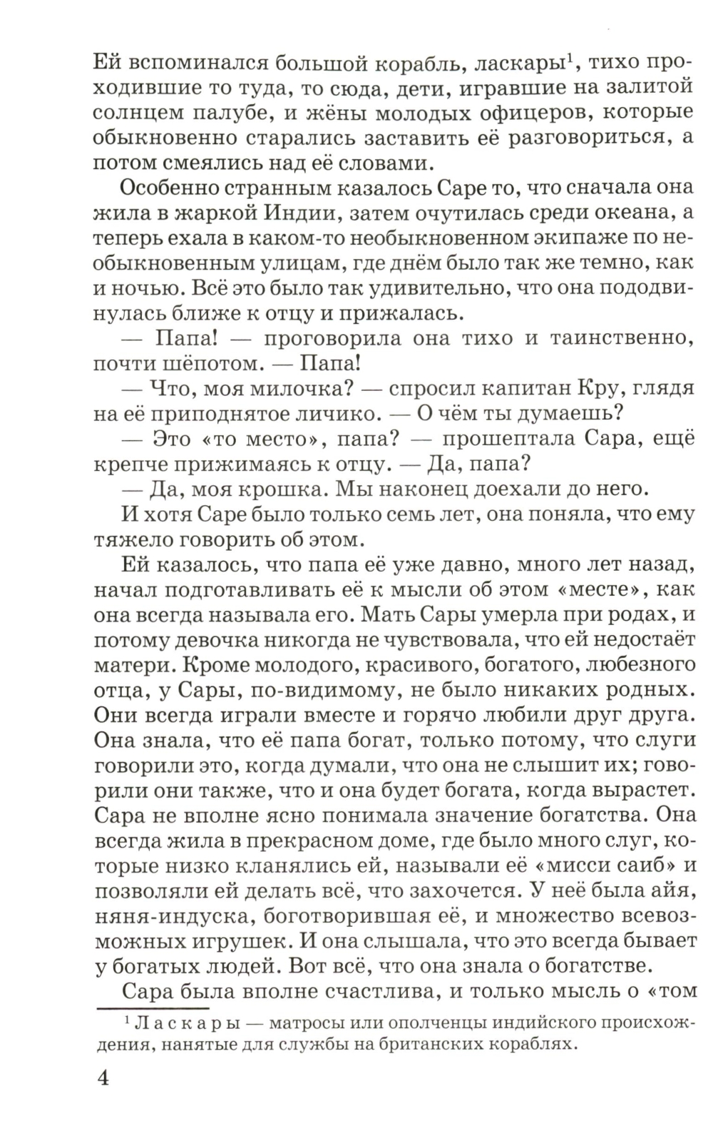 Трогательная, щемящая история семилетней девочки, которая с раннего детства жила в достатке и атмосфере доброты. За ее красоту и душевную щедрость все называли ее принцессой. Однако после смерти отца она, став нищенкой, сразу ощутила к себе иное отношение, порой даже жестокое. Но благодаря стойкости характера и душевному величию она сумеет преодолеть все невзгоды, не утратив своих лучших качеств. И ее снова будут называть принцессой. Повесть написана Фрэнсис Бернетт более ста лет назад, но сегодня, в век стяжательства и потери части духовных ценностей она становится еще более актуальна и востребована. Для среднего школьного возраста.| Издательство | Искателькнига |