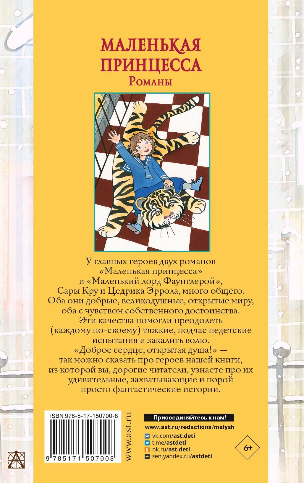 Бёрнетт, Фрэнсис Элиза (1849-1924) - известная англо-американская детская писательница. В нашу книгу «Маленькая принцесса. Романы» вошли два произведения «Маленькая принцесса» и «Маленький лорд Фаунтлерой». Впервые оба они были опубликованы почти одновременно: первый в 1886 г., второй - в 1888 г., и оба сразу стали бестселлерами и уже более ста лет это классика детской мировой литературы. Перевод с английского А. Рождественской и Е. Таборовской.| Издательство | ИЗДАТЕЛЬСТВО "АСТ" |