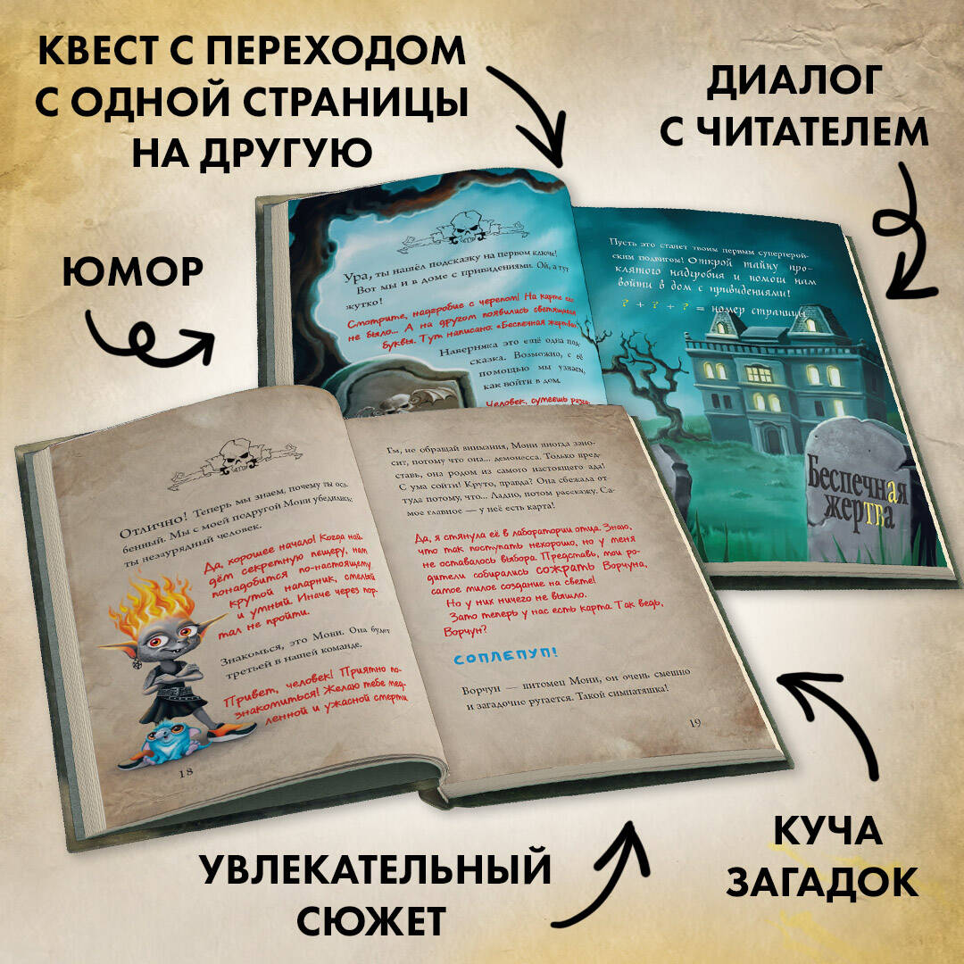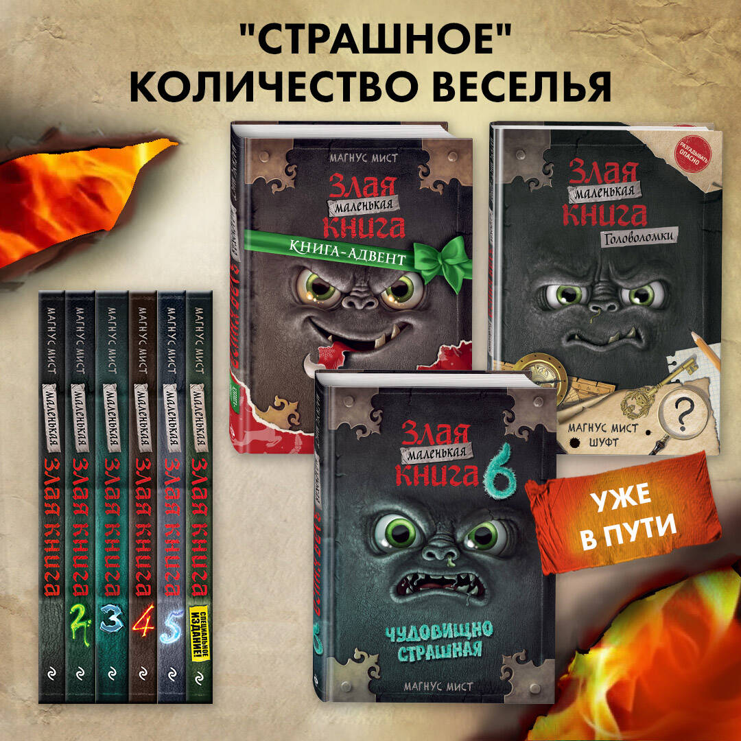 «Маленькая злая книга» заполучила секретную карту, которая может привести её к магическим сокровищам и… таинственному порталу! Если ей удастся открыть его, то она проберётся в мир людей! Но вот незадача: без читателя ей не справиться! А это значит, что злюка снова нуждается в твоей помощи! Тебе придётся решить новые загадки, побывать в доме с привидениями, заглянуть в Страну монстров и побывать в самом опасном месте на свете! Рискнёшь ли ты принять этот вызов? КНИГА, КОТОРАЯ ИЗБАВЛЯЕТ ОТ СТРАХА ПЕРЕД ЧТЕНИЕМ! ПРОВЕРЕНО СОТНЯМИ ТЫСЯЧ ДЕТЕЙ ПО ВСЕМУ МИРУ!| Издательство | Эксмо |