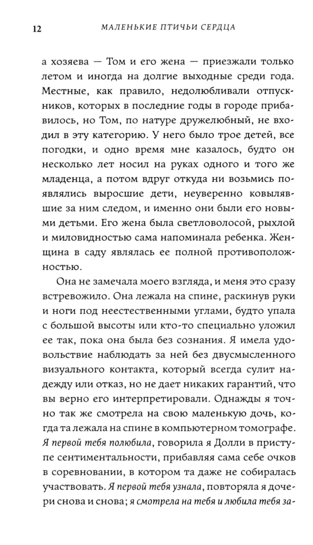 Сандей живет в небольшом городке. Ей сложно общаться с людьми, поэтому она ищет подсказки, как вести беседы и принимать гостей, в справочнике по этикету и сицилийском фольклоре. Близкие отношения у нее лишь с дочерью, но Долли уже шестнадцать, она вот-вот выпорхнет из гнезда, и Сандей заранее переживает об этом. Когда рядом поселяется гламурная лондонская пара Вита и Ролло, которая обезоруживает своим обаянием, ее тревога только нарастает. Долли все чаще задерживается у них в гостях, забывая предупредить мать, все реже делится с ней секретами, все более странно ведет себя. Сандей все больше беспокоит вопрос: что кроется за фасадом красивой жизни лондонской пары? Это пронзительная история о родительстве, одиночестве и о том, что цена доверия между людьми всегда высока.| Издательство | Livebook (Лайвбук) |