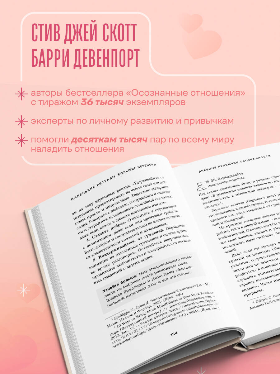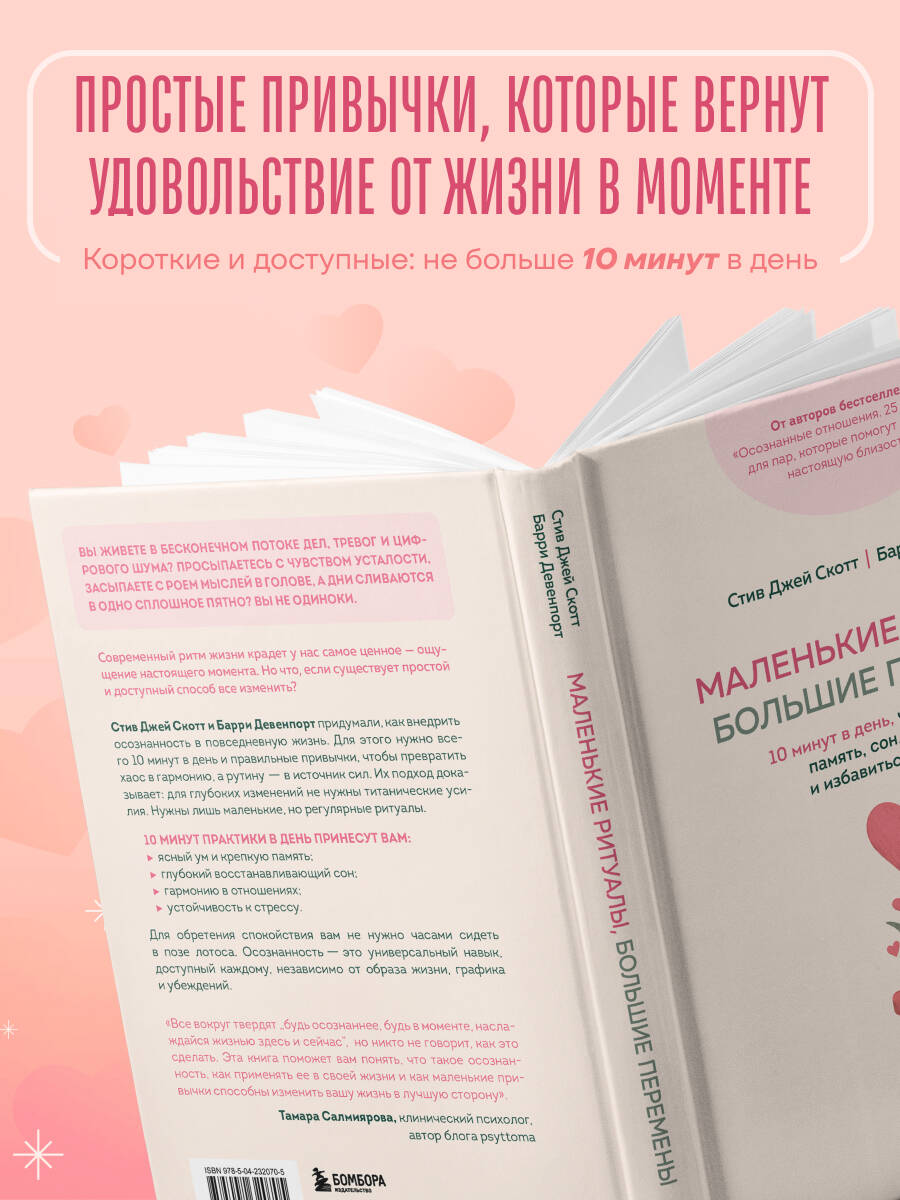 Вы живете в бесконечном потоке дел, тревог и цифрового шума? Просыпаетесь с чувством усталости, засыпаете с роем мыслей в голове, а дни сливаются в одно сплошное пятно? Вы не одиноки. Современный ритм жизни крадет у нас самое ценное - ощущение настоящего момента. Но что, если существует простой и доступный способ все изменить? Стив Джей Скотт и Барри Девенпорт, авторы бестселлера «Осознанные отношения. 25 привычек для пар, которые помогут обрести настоящую близость» помогли десяткам тысяч пар по всему миру наладить отношения, а в новой книге предлагают четкий и эффективный план по внедрению привычек во всех сферах жизни. 1. Практические методы для формирования устойчивой привычки. 2. Интеграция в ваш режим дня - от пробуждения до отхода ко сну. 3. Простота и доступность. Чтобы стать спокойнее и счастливее, вам не нужны часовые медитации в позе лотоса. Осознанность - это умение присутствовать телом и головой в том, что вы делаете: будь то важный проект или мытье холодильника. И этому можно научиться.| Издательство | ООО "Издательство "Эксмо" |