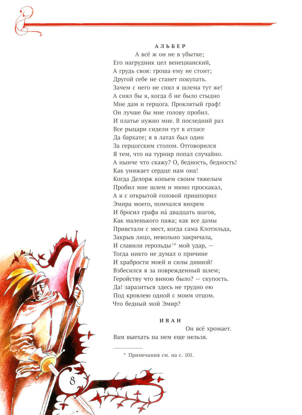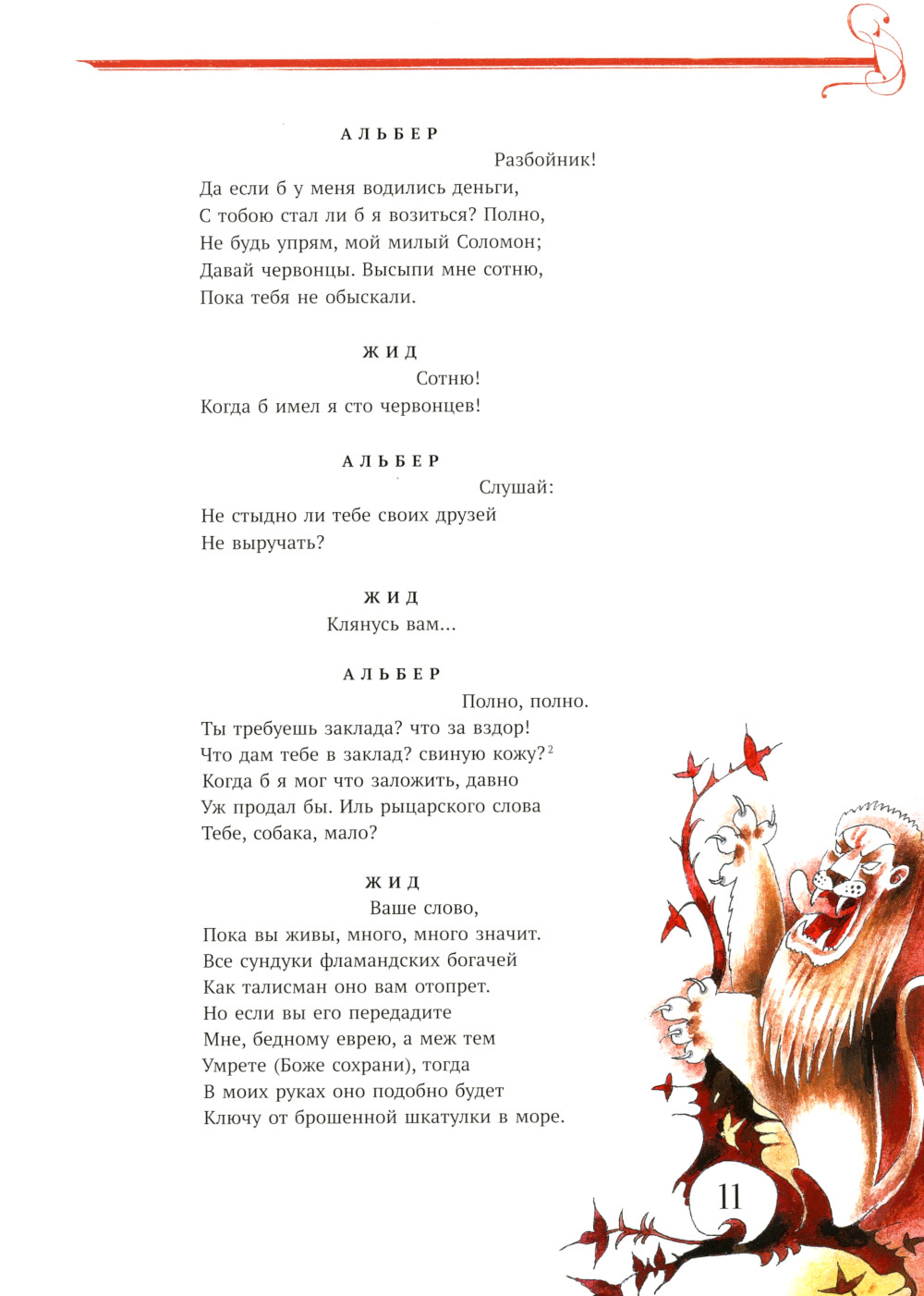 В книгу включены «Маленькие трагедии» А. С. Пушкина (1799-1837): «Скупой рыцарь», «Моцарт и Сальери», «Каменный гость» и «Пир во время чумы». Завершенные в период взлета пушкинского гения - Болдинской осенью 1930 года, эти драматические этюды являют собой одну из вершин творчества поэта. Издание посвящено 225-летию со дня рождения А. С. Пушкина. Для среднего и старшего школьного возраста.| Издательство | Детская литература |