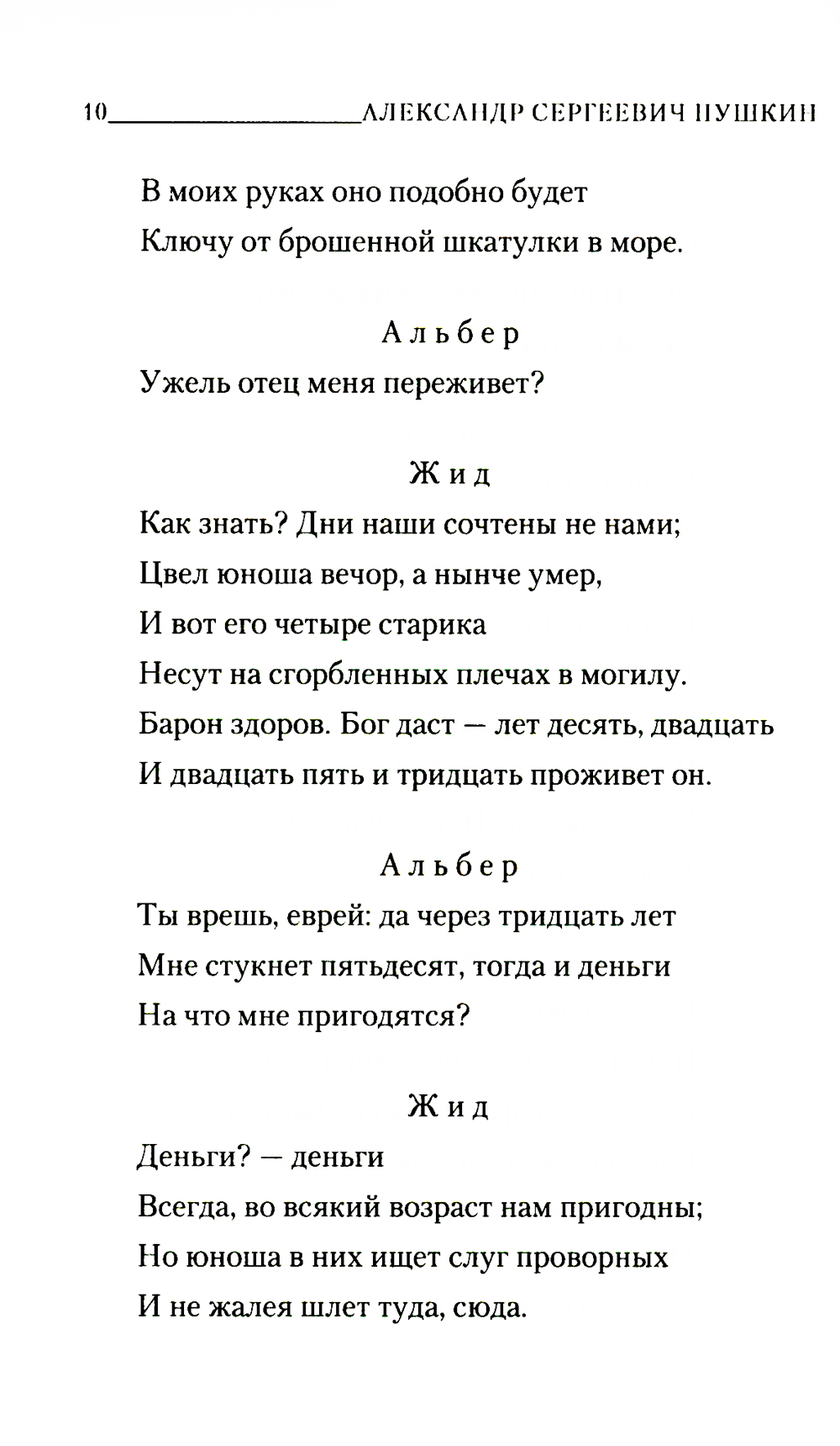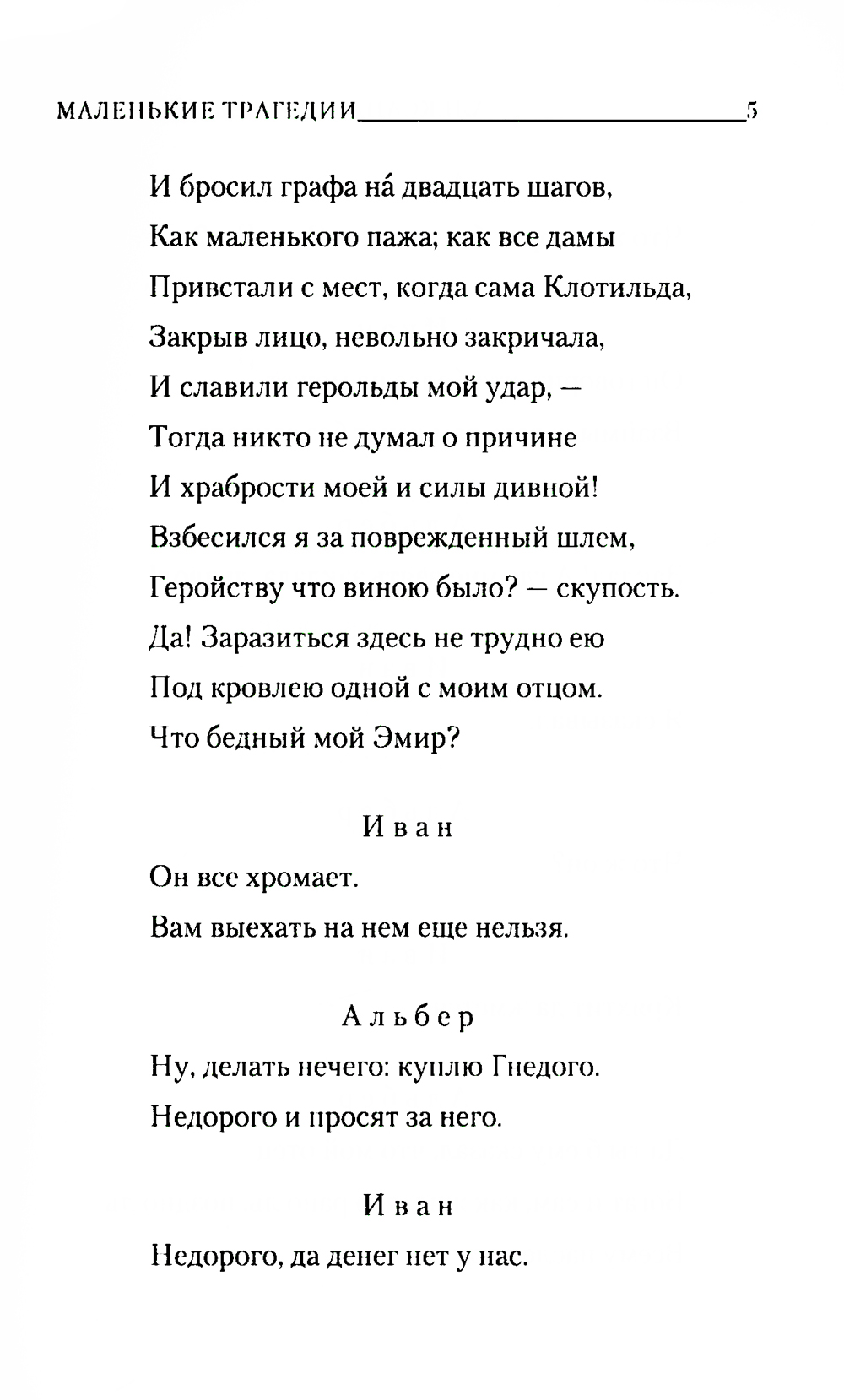 Александр Сергеевич Пушкин (1799-1837) - классик русской литературы, заложивший основы русского реалистического направления, поэт, прозаик и драматург. За творческие заслуги писателя еще при жизни стали именовать гением. Гоголь писал: «Пушкин есть явление чрезвычайное и, может быть, единственное явление русского духа: это русский человек в его развитии, в каком он, может быть, явится чрез двести лет». «Маленькими трагедиями» называется цикл небольших драматических пьес Пушкина, написанный в период знаменитой Болдинской осени в 1830 году. В него входят «Скупой рыцарь», «Моцарт и Сальери», «Каменный гость» и «Пир во время чумы». Основным мотивом трагедий становятся людские страсти: к деньгам в «Скупом рыцаре», к искусству в «Моцарте и Сальери», к возлюбленной в «Каменном госте» и к самой жизни в «Пире во время чумы».| Издательство | Омега-Л |
