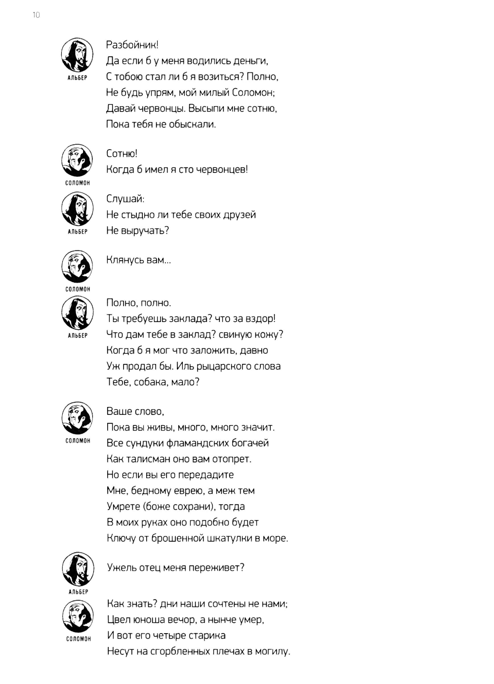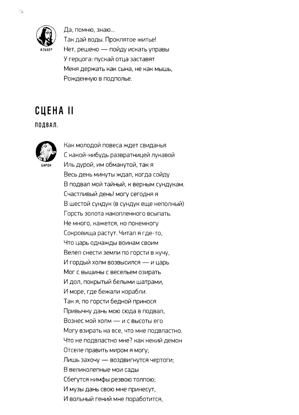 В издании представлены «Маленькие трагедии» А.С. Пушкина («Скупой рыцарь», «Моцарт и Сальери», «Каменный гость», «Пир во время чумы») с замечательными иллюстрациями Екатерины Климовой. Книга подготовлена с использованием современных издательских технологий, позволяющих читать пьесу «в лицах». Для читателей всех возрастов.| Издательство | Проспект |