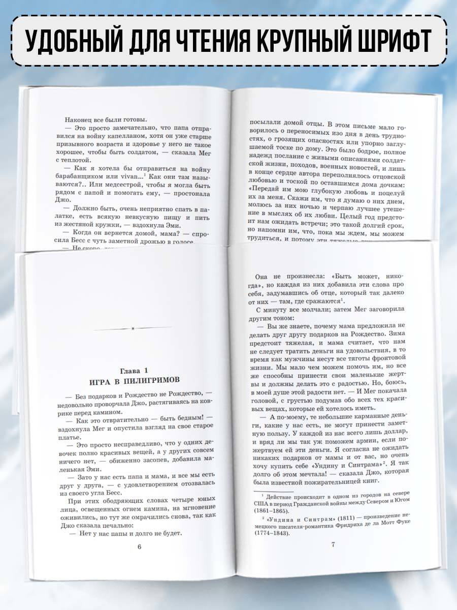 "Маленькие женщины" - знаменитый роман американской писательницы Луизы Мэй Олкотт (1832-1888). Впервые был опубликован в 1868 году и имел мгновенный успех: герои романа так полюбились читателям, что они с нетерпение ждали второго тома ("Хорошие жены"), чтобы побольше узнать о судьбах полюбившихся персонажей. Роман повествует о жизни четырех сестер - Мэг, Джо, Бесс и Эми. Уже более ста лет эта история продолжает волновать сердца читателей, потому что темы, которые затрагиваются в романе, вечны во все времена: забота о близких, взросление, поиски счастья, дружбы, прощения и, конечно же, первой любви. Роман стал классикой мировой литературы и был несколько раз экранизирован. Перевод с английского М. Батищевой. Для среднего школьного возраста.| Издательство | АСТ |