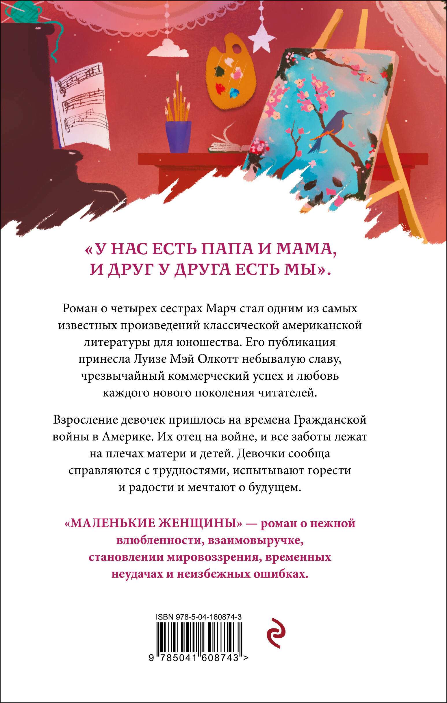 Любимая многими серия «Белая птица» - теперь и в твердом переплете! «Маленькие женщины» - одно из самых известных произведений классической американской литературы для юношества. Его публикация принесла Луизе Мэй Олкотт небывалую славу, чрезвычайный коммерческий успех и любовь каждого нового поколения читателей. Олкотт писала о девушках и для девушек. На страницах этой книги юные красавицы увидят, как их ровесницы проживают актуальные для них проблемы, а молодые мамы снова окунутся в свое счастливое беззаботное детство, вспомнят свои веселые шалости, свою первую любовь. В книге рассказывается о времени взросления четырех сестер семейства Марч во время Гражданской войны в Америке; о нежной влюбленности, надеждах, взаимовыручке, становлении мировоззрения, неудачах и ошибках. Помимо трудностей, которые им предстоит преодолевать, их повседневная жизнь состоит из множества приятных событий. Сюжет «Маленьких женщин» словно создан для моментов, когда очень хочется, чтобы жизнь наполнилась позитивными эмоциями.| Издательство | ООО "Издательство "Эксмо" |