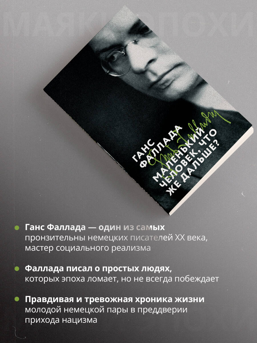 Ганс Фаллада - один из самых пронзительных немецких писателей XX века, мастер социального реализма. Его творчество рождалось на фоне катастрофической истории Германии между двумя мировыми войнами: безработица, инфляция, страх и утрата человеческого достоинства стали не декорацией, а сердцевиной его прозы. Фаллада писал о простых людях, которых эпоха ломает, но не всегда побеждает. Его произведения наполнены сочувствием, наблюдательностью и тонким психологизмом. "Маленький человек, что же дальше?" - один из самых известных романов Фаллады, правдивая и тревожная хроника жизни молодой немецкой пары в преддверии прихода нацизма. Иоганнес Пиннеберг и его жена Ягненок - "маленькие люди", пытающиеся сохранить любовь и достоинство в мире, который все стремительнее теряет человеческий облик. Потеря работы, унижение, страх перед будущим - всё это описано с жесткой точностью, но без уныния: в романе живёт светлая, упрямая вера в простое человеческое счастье. Это книга о тревожном времени и о тех, кто в нём жил. И, как всякая подлинная литература, она остаётся удивительно актуальной.| Издательство | ООО "Издательство "Эксмо" |