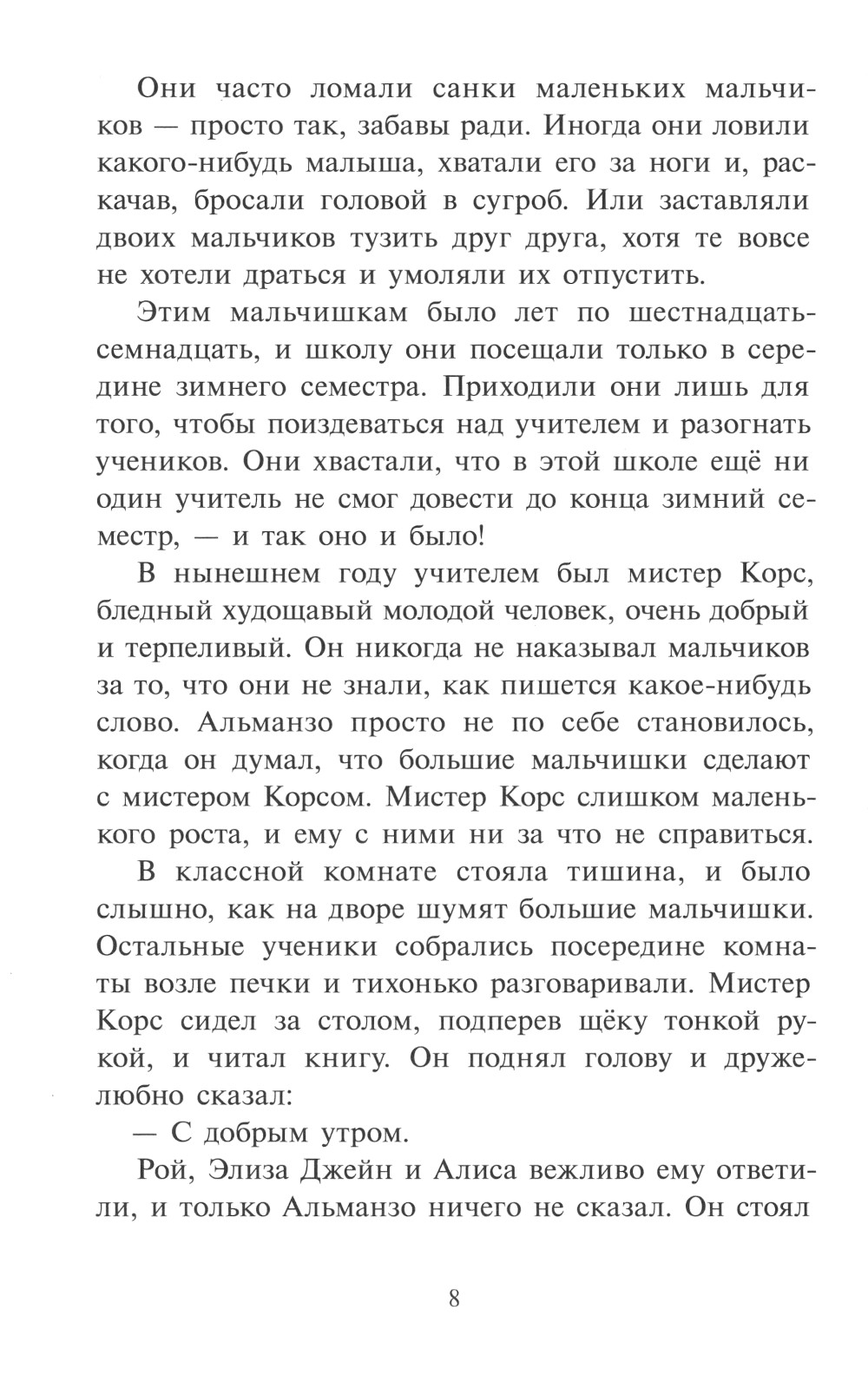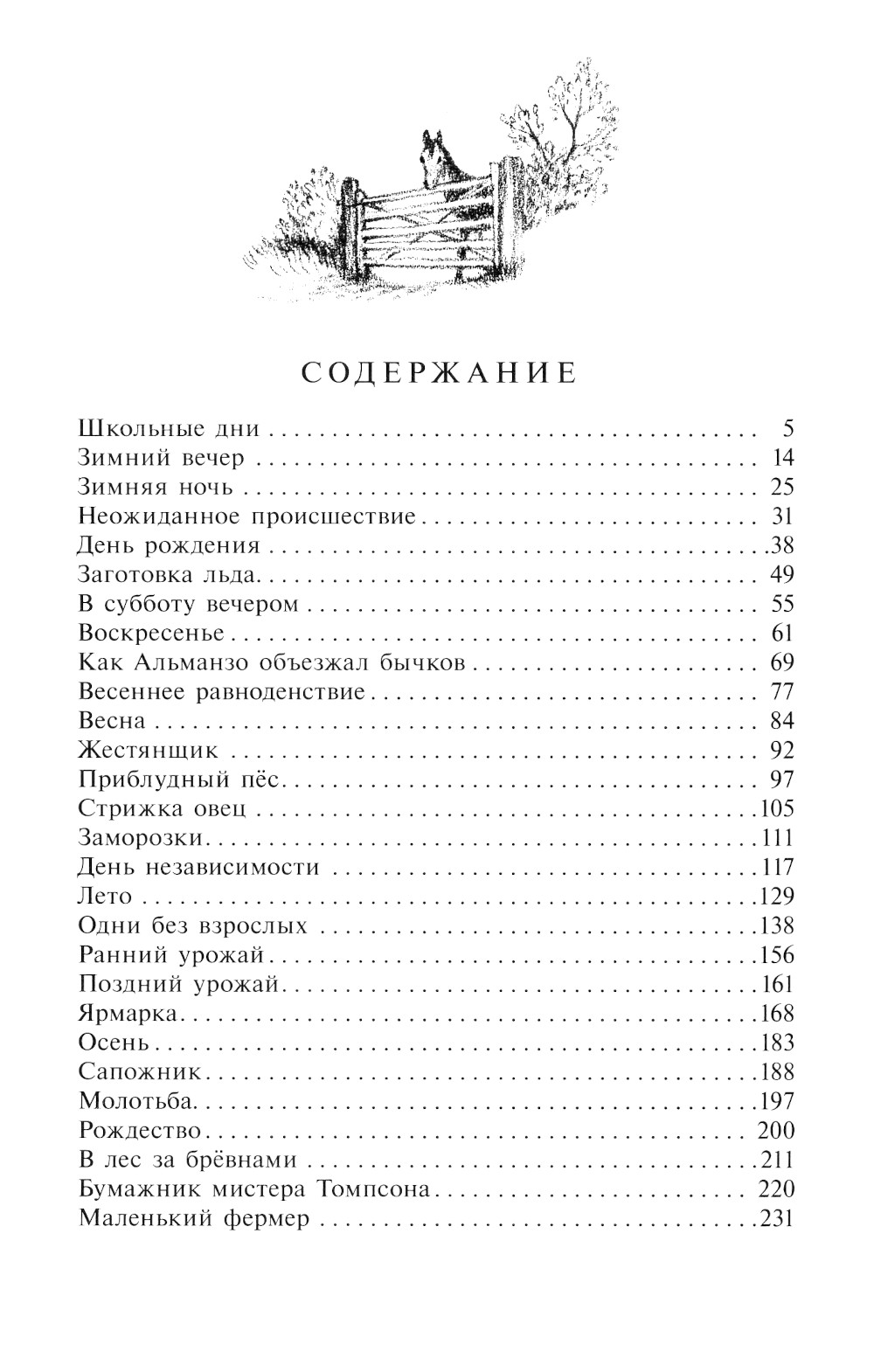 «Маленький фермер» - пятая книга знаменитой автобиографической эпопеи американской писательницы Лоры Инглз Уайлдер. Читая эту книгу, невозможно не сравнивать образ жизни детей конца XIX и начала XXI веков. Трудолюбивый, честный и любознательный Альманзо - прирождённый фермер, хотя ему ещё нет 10 лет. Он умеет делать практически всё, что делают взрослые: запрягать бычков и возить на них брёвна, доить корову, взбивать масло, стричь овец, выпиливать из льда кубы и сооружать из них ледник, сажать, пропалывать и спасать посевы от заморозков - всего не перечислишь. Главное, что эти «взрослые», подчас утомительные и физически тяжёлые обязанности его не тяготят. Альманзо выполняет их как само собой разумеющееся и даже с удовольствием, да ещё и успевает учиться в школе.| Издательство | Мелик-Пашаев |
