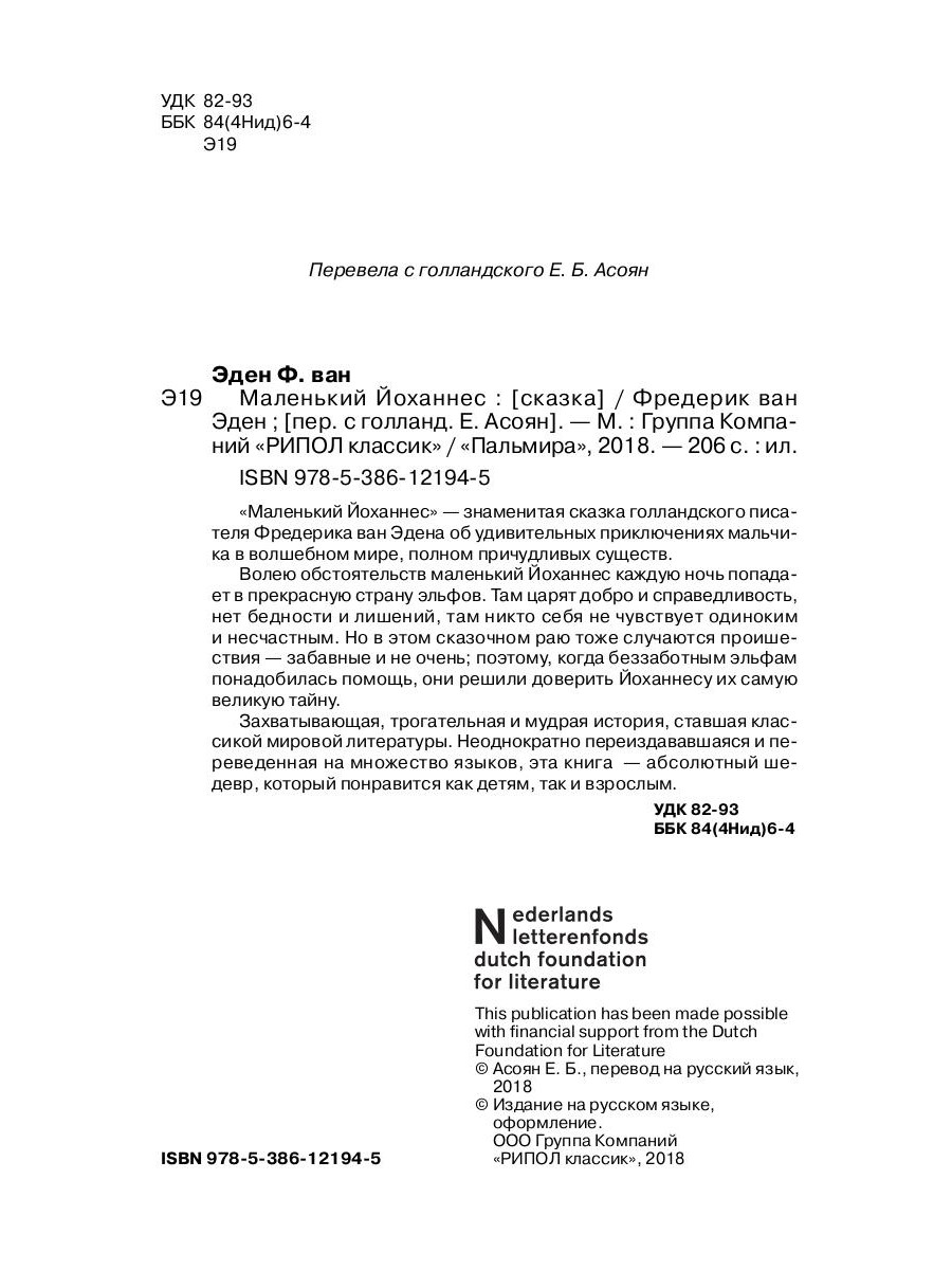 «Маленький Йоханнес» - знаменитая сказка голландского писателя Фредерика ван Эдена об удивительных приключениях мальчика в волшебном мире, полном причудливых существ.