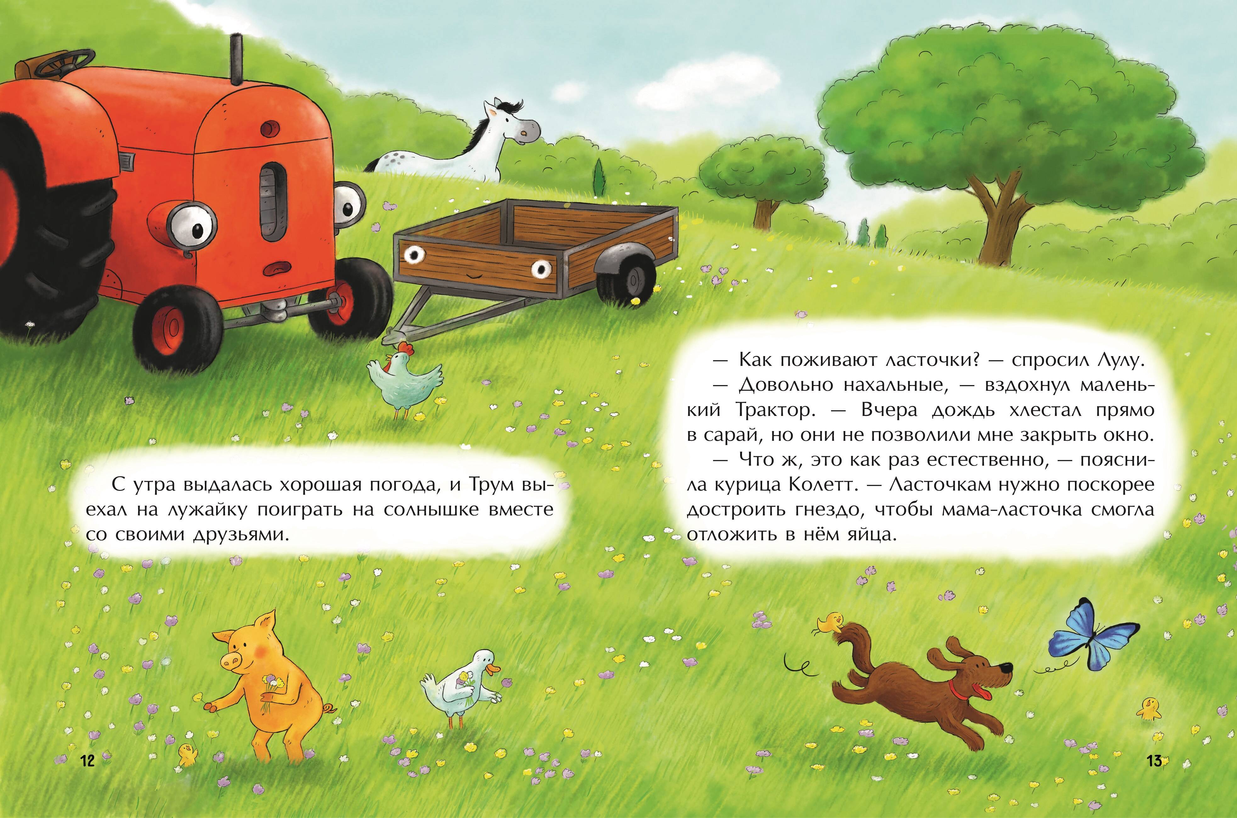 Новая книга о приключениях маленького красного Трактора и его друзей! Истории о дружбе, понимании, взаимовыручке и настоящем счастье покорили сердца тысяч детей. Как-то раз маленький красный Трактор заехал в свой сарай и увидел, что в нём поселились ласточки. Птицы вили гнездо, не обращая внимания на хозяина и даже не спросив его разрешения. С каждым днём новые соседи доставляли малышу всё больше неудобств. И вот настал момент, когда терпение Трактора закончилось. Он решил выгнать беспокойных соседей. Но одна случайная встреча изменила его планы и положила начало настоящей дружбе.| Издательство | ООО "Издательство "Эксмо" |