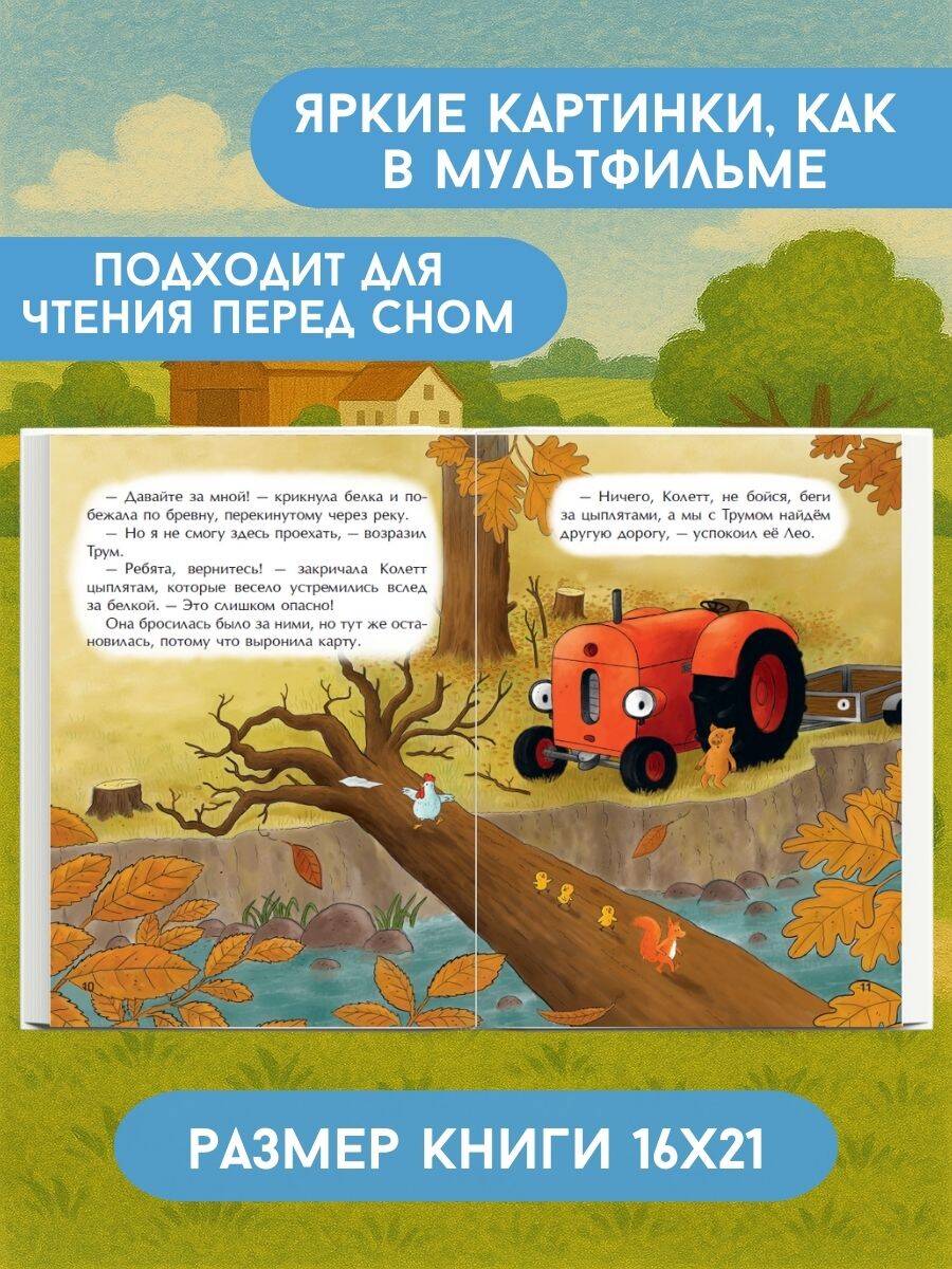 Очередное увлекательное приключение маленького красного Трактора и его друзей! Книжки-картинки о заботе, понимании, взаимовыручке и настоящем счастье покорили сердца тысяч малышей. В этой тёплой и доброй истории маленький Трактор Трум впервые отправляется в большое осеннее путешествие за пределы родной фермы. Вместе с друзьями он преодолевает трудности, заводит дружбу с жителями леса, учится не бояться нового - и вдруг замечает, что осень, которую он раньше не любил, на самом деле полна красоты и удивительных открытий. Издание с динамичным сюжетом и яркими иллюстрациями на каждой странице прекрасно подойдёт на подарок ребёнку. Замечательный вариант для первого чтения и сказки на ночь! Все книги серии особенно понравятся детям 3-4 лет.| Издательство | ООО "Издательство "Эксмо" |