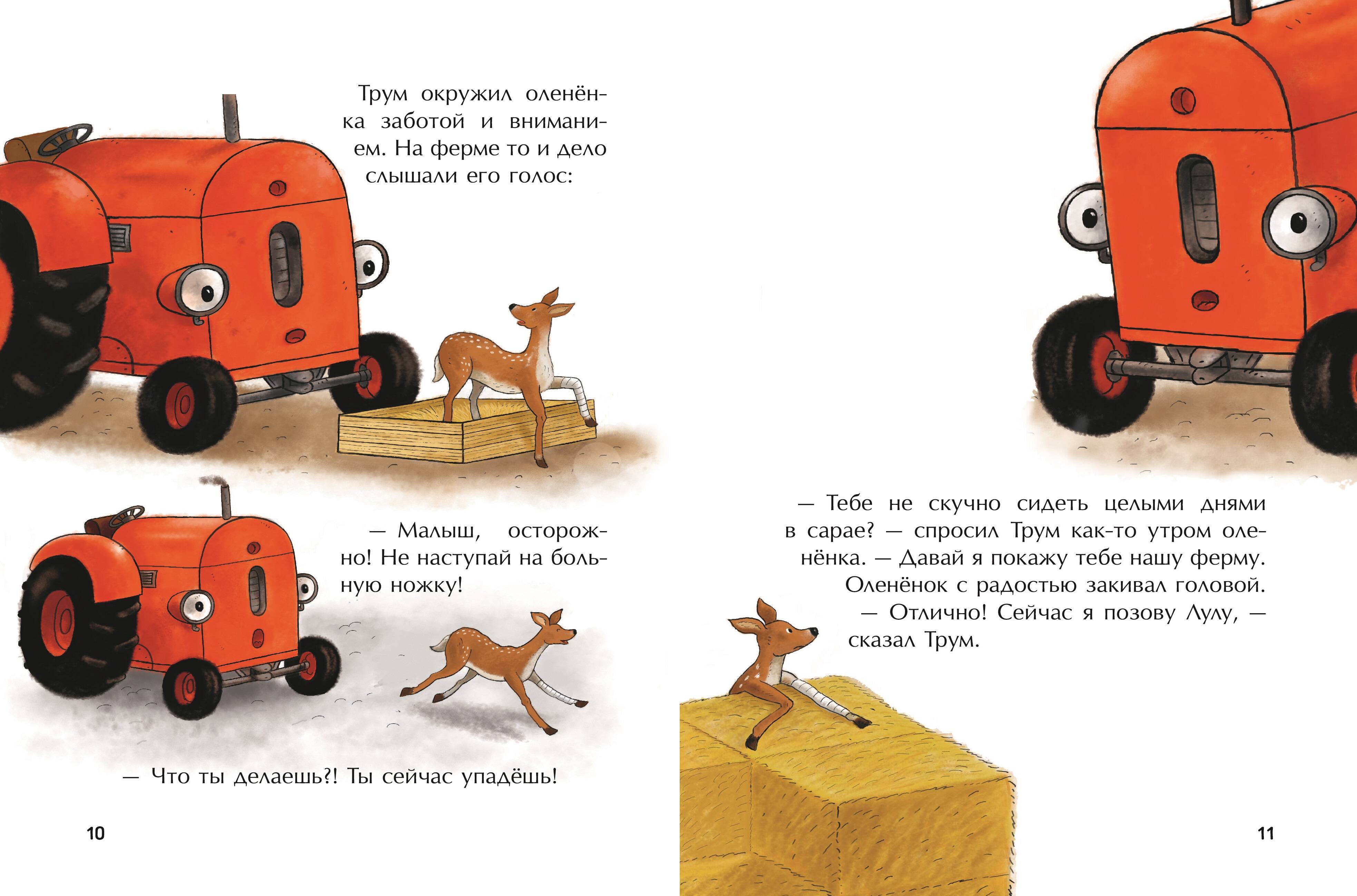 Новая книга о приключениях маленького красного Трактора и его друзей! Истории о дружбе, понимании, взаимовыручке и настоящем счастье покорили сердца тысяч детей. Как-то раз маленький красный Трактор увидел на дороге оленёнка с больной ножкой. Трум решил помочь малышу - он подобрал его, отвёз на ферму и заботился о новом друге так хорошо, как только мог. Оленёнок поправился, и Трум начал замечать, что малыш скучает по своим родителям, которые остались в лесу. Маленькому Трактору предстоит совершить первый по-настоящему серьёзный поступок - отпустить оленёнка к маме и папе, чтобы сделать его счастливым.| Издательство | ООО "Издательство "Эксмо" |